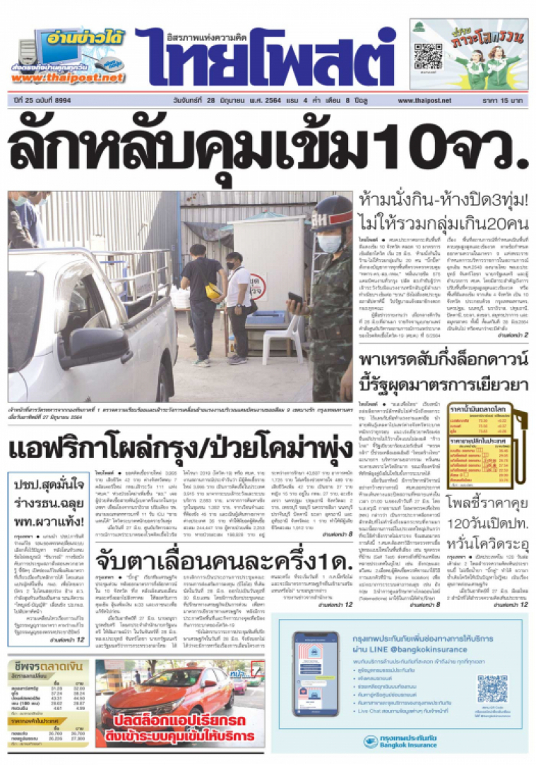 ศบค.ประกาศยกระดับพื้นที่สีแดงเข้ม 10 จังหวัด คลอด 10มาตรการเข้มล็อกโควิด เริ่ม 28 มิ.ย. ห้ามนั่งกินในร้าน-ไม่ให้รวมกลุ่มเกิน 20คน "บิ๊กปั๊ด" สั่งกองบัญชาการทุกพื้นที่ตรวจตราควบคุม