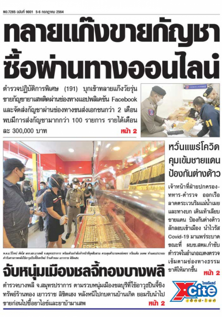 ตำรวจปฏิบัติการพิเศษ (191) บุกเข้าทลายแก๊งวัยรุ่นขายกัญชายาเสพติดผ่านช่องทางแอปพลิเคชัน Facebook และจัดส่งกัญชาผ่านช่องทางขนส่งเอกชนกว่า 2 เดือน พบมีการส่งกัญชา มากกว่า 100 รายการ รายได้เดือนละ 300,000 บาท