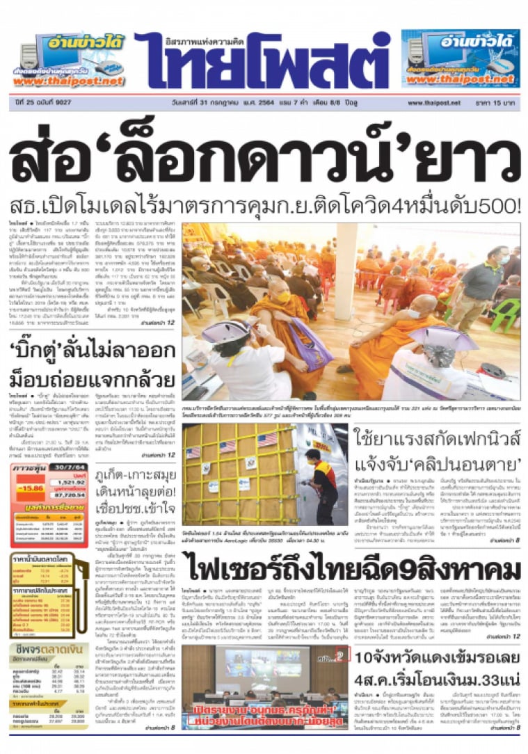 นายกฯ แจงหลายประเทศมีปัญหาเรื่องวัคซีน ยันเปิดรับทุกยี่ห้อวอนอย่าจับผิดกันเลย พยายามอย่างเต็มที่แล้ว "อนุทิน" รับมอบไฟเซอร์จากสหรัฐ 1.5 ล้านโดส “อุปทูตสหรัฐ” ยันบริจาคให้ไทยรวม 2.5 ล้านโดสแบบไม่มีเงื่อนไข หวังจัดสรรอย่างยุติธรรม