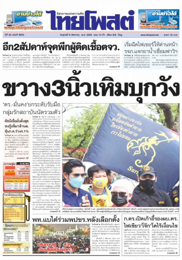 วัคซีนไฟเซอร์ชุดแรกถึง 69 รพ.ในพื้นที่ 10 จังหวัด เริ่มฉีดบุคลากรทางการแพทย์แล้ว เร่งให้ครบตามเป้าภายในเดือนนี้ กต.แจงกฎฉีดวัคซีนให้ นศ.ไทยเรียนต่อต่างแดน ราชวิทยาลัยจุฬาภรณ์จ่อยื่น อย.ขึ้นทะเบียนซิโนฟาร์มสำหรับเด็ก แจก "ยาน้ำเชื่อมฟาวิพิราเวียร์" 6 ส.ค.