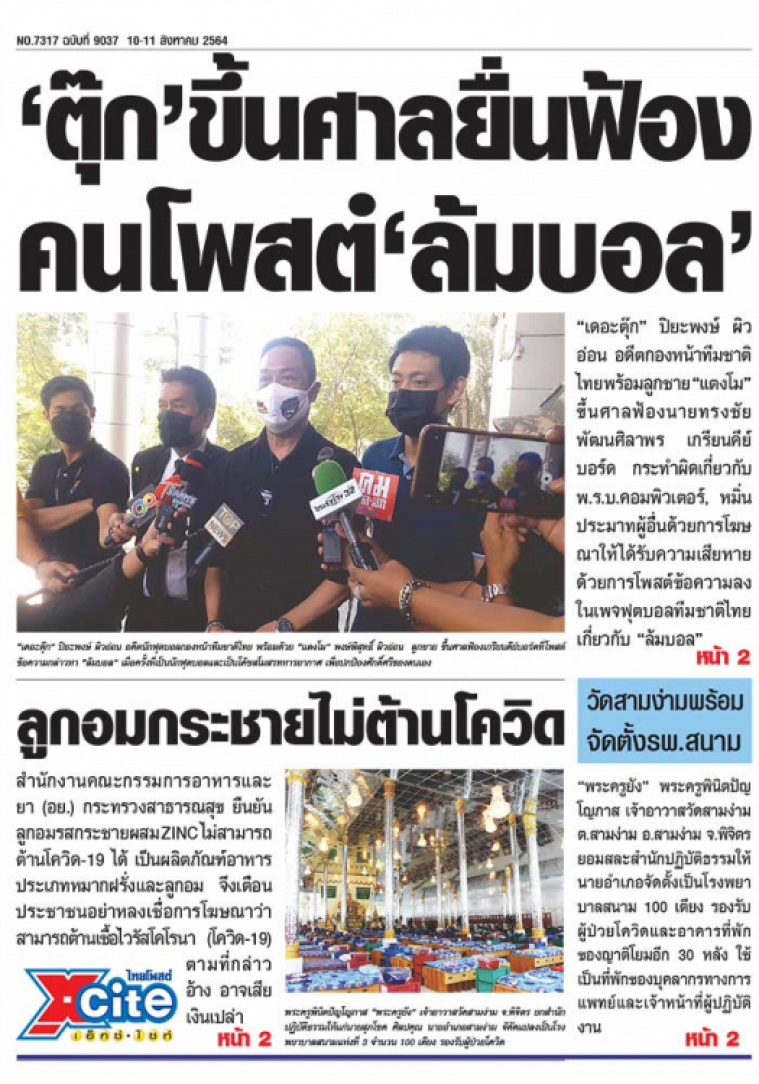 "เดอะตุ๊ก" ปิยะพงษ์ ผิวอ่อน อดีตกองหน้าทีมชาติไทย พร้อมลูกชาย "แตงโม" ขึ้นศาลฟ้องนายทรงชัย พัฒนศิลาพร เกรียนคีย์บอร์ด กระทำผิดเกี่ยวกับ พ.ร.บ.คอมพิวเตอร์ฯ