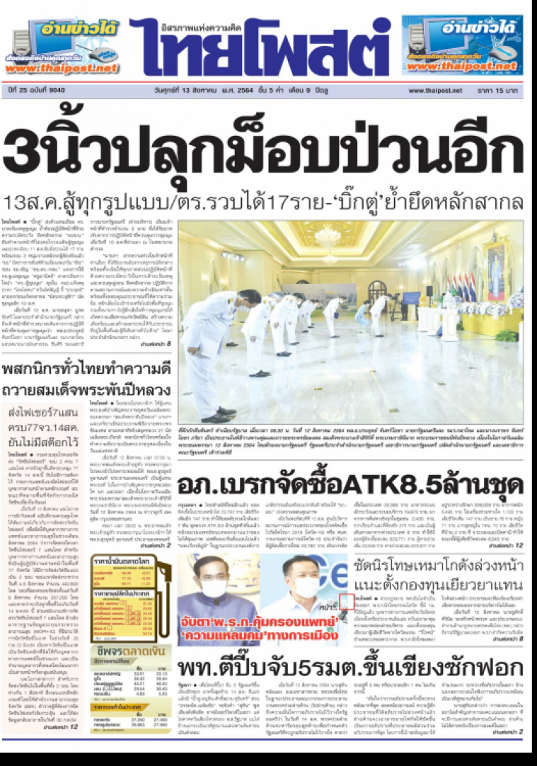 ไทยทำสถิติใหม่อีกแล้ว ยอดติดเชื้อในประเทศนิวไฮ 22,782 ราย เสียชีวิตเพิ่มอีก 147 ราย ทำให้ยอดดับรวมใกล้แตะ 7 พัน ชุดตรวจ ATK 8.5 ล้านชุดหัวทิ่มแล้ว หลังชมรมแพทย์ชนบทออกมาแฉว่าของไม่ได้คุณภาพ เอฟดีเอมะกันสั่งแบนไปแล้ว “นพ.เกียรติภูมิ” ในฐานะประธานองค์การเภสัชกรรมสั่งเหยียบเบรกทันที พร้อมให้ “อภ.-อย.” เร่งตรวจสอบคุณภาพ