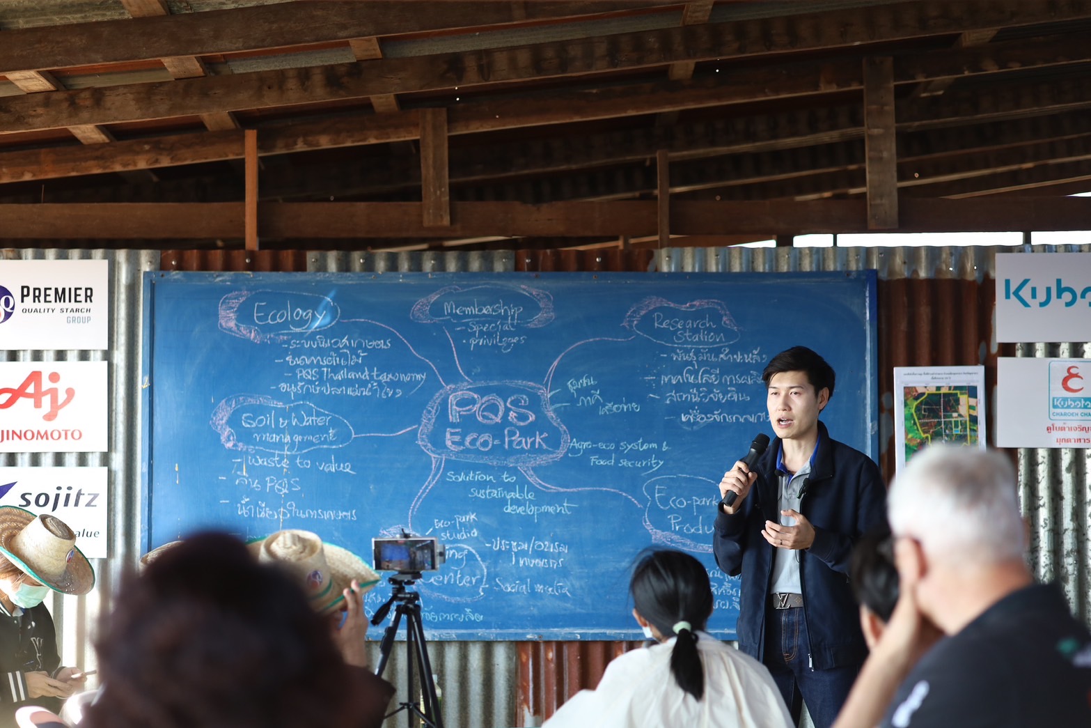 “บริษัทมีความตั้งใจที่จะส่งเสริม พื้นที่250ไร่ หรือ PQS Eco Park ให้เป็นแหล่งเรียนรู้และถ่ายทอด ความรู้ ด้านการจัดการระบบนิเวศเกษตรที่ดี โดยการ แนะนําเกษตรกรในชุมชนให้เข้ามามีส่วนร่วมในการ พัฒนาอาชีพ ซี่งจะช่วยสร้างความรู้ความเข้าใจในการ อนุรักษ์สิ่งแวดล้อมและการจัดการทรัพยากรอย่างมีประสิทธิภาพ โดยการมีส่วนร่วมของชุมชน เพื่อพัฒนาอาชีพและเสริมสร้างความเข้มแข็งของชุมชน โดยเน้น การพัฒนาทักษะและความรู้ในการจัดการเกษตรกรรม และสนับสนุนให้ชุมชนมีรายได้จากการผลิตพืชเกษตรแบบยั่งยืน ซึ่งจะช่วยสร้างความตระหนักรู้เกี่;ยวกับการ รักษาสิ่งแวดล้อมและการพัฒนาเศรษฐกิจฐานรากในชุมชน โดยสร้างอาคารอเนกประสงค์จากวัสดุรียูส เพื่อใช้ในการจัดประชุมชาวบ้าน และเป็นจุดสาธิตกิจกรรมต่างๆ เกี่ยวกับการเกษตร มีการผลิต Content ในชื่อ eco-park studio ส่งเสริมความรู้เกษตรกรในโซเชียลมีเดีย จัดกิจกรรม eco- park event สถานีวิจัยดิน การสนับสนุนเครื่องจักรกล เกษตรสําหรับสมาชิกแปลง”นายรัฐวิรุฬห์ กล่าว