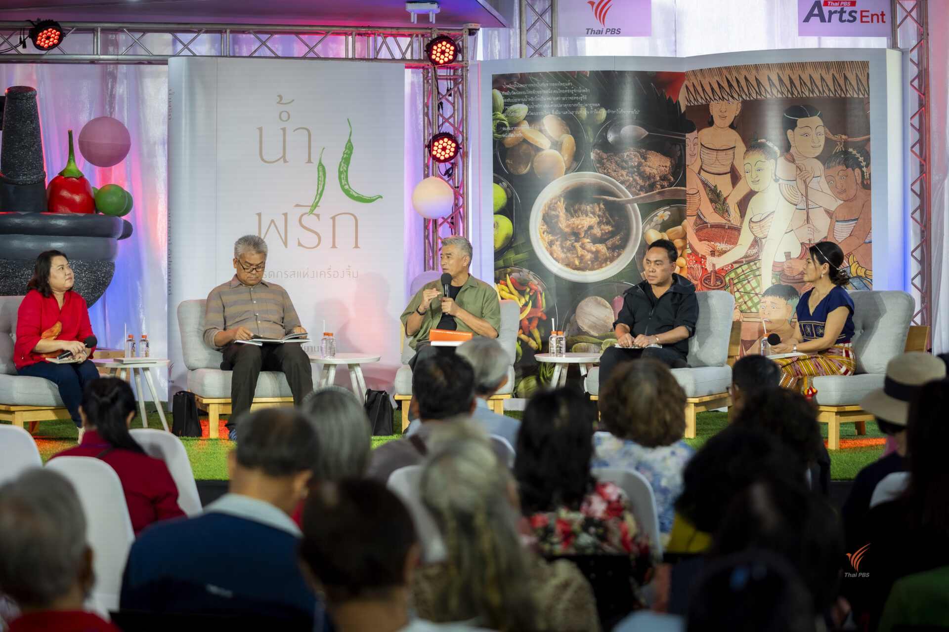 ในงานศิลป์สโมสรเสวนาจัดโดยศูนย์สื่อศิลปวัฒนธรรม ไทยพีบีเอส จัดกิจกรรมเสวนาเปิดตัวหนังสือ “น้ำพริก มรดกรสแห่งเครื่องจิ้ม” เพื่อสืบทอดสูตรน้ำพริกดั้งเดิมที่มีเสน่ห์เอกลักษณ์แบบไทยสู่ความร่วมสมัย ส่งต่อน้ำพริกสำรับเครื่องจิ้มพื้นบ้านไทย เผยแพร่ไปสู่สากล กระตุ้นเศรษฐกิจประเทศ ถือเป็นทุนทางวัฒนธรรม (Soft Power) อย่างแท้จริง