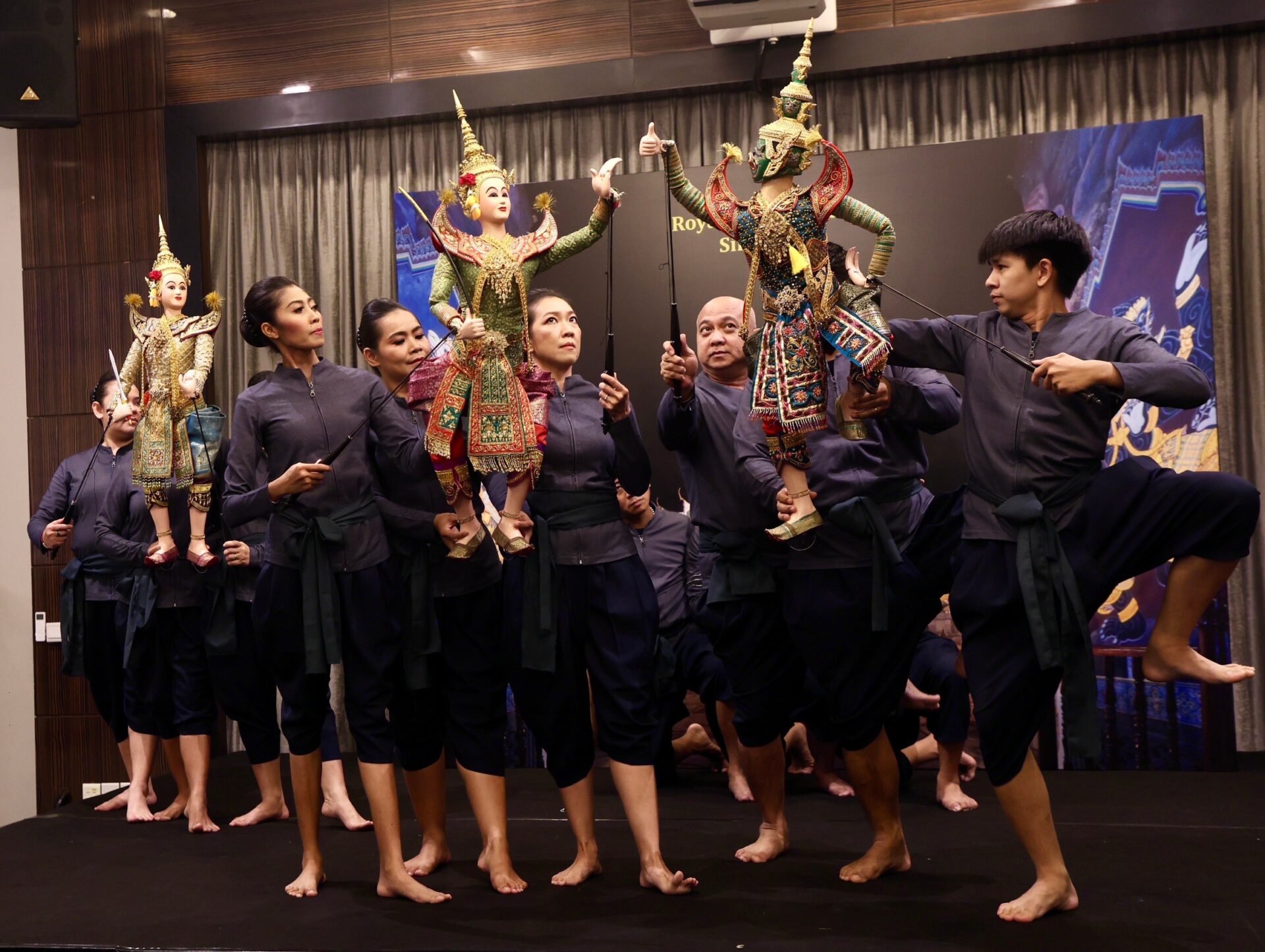 งานเฉลิมฉลองสะกดสายตาทุกคู่ด้วยการแสดงหุ่นละครเล็กจากโรงละครอักษรา สุดวิจิตรตระการตา เรื่องรามเกียรติ์ ตอน”ยกรบ” สนับสนุนโดยการท่องเที่ยวแห่งประเทศไทย (ททท.) ลีลาความเคลื่อนไหวของหุ่นเสมือนมีชีวิตเป็นหนึ่งเดียวกับผู้เชิด ซึ่งต้องใช้ผู้เชิดหุ่น 3 คนต่อหุ่นหนึ่งตัว ไม่เพียงสร้างความประทับใจให้แก้ผู้ชมเท่านั้น แต่สะท้อนถึงมรดกทางวัฒนธรรมอันทรงคุณค่าผ่านศิลปะการแสดงอันเป็นเอกลักษณ์ของไทย อีกทั้งได้ดื่มด่ำรูปภาพศิลปะไทย ภาพถ่ายประวัติศาสตร์การเสด็จประพาสสิงคโปร์ของรัชกาลที่ 4 5 6 7 และรัชกาลที่ 9 ภาพจิตรกรรมฝาผนังขนาดใหญ่พระนารายณ์ทรงครุฑ สัญลักษณ์สื่อถึงพระมหากษัตริย์เสด็จฯ ไปยังสถานที่ต่างๆ รังสรรค์โดยปัญญา วิจินธนสาร ศิลปินแห่งชาติผู้เลื่องชื่อ ทั้งยังมีภาพอื่นๆ อีกมากที่ประดับตกแต่งภายใน ตลอดจนศาลาไทยทรงจตุรมุขงามสง่าตามสถาปัตยกรรมไทยขั้นสูงสุดในพื้นที่แห่งนี้