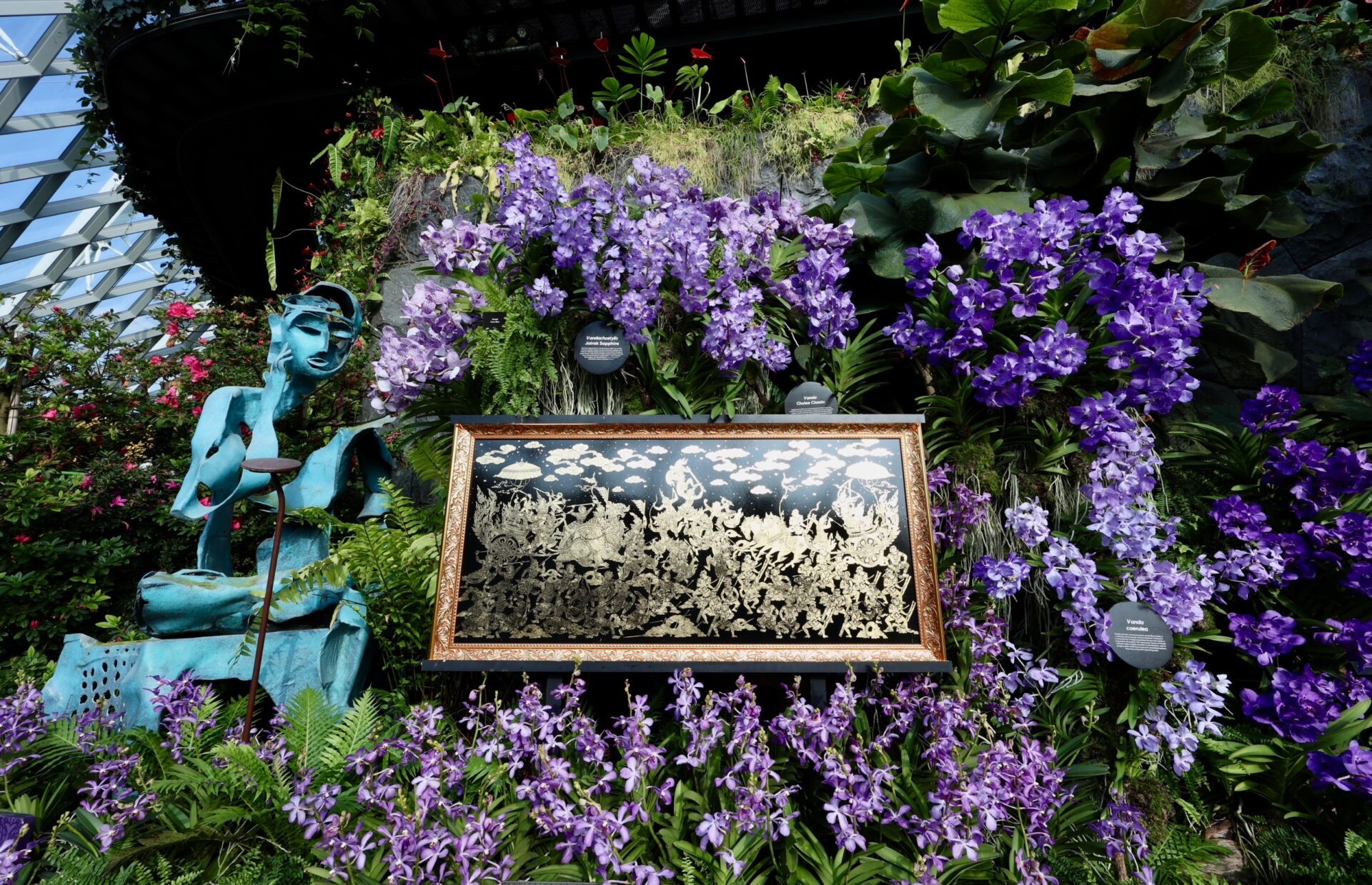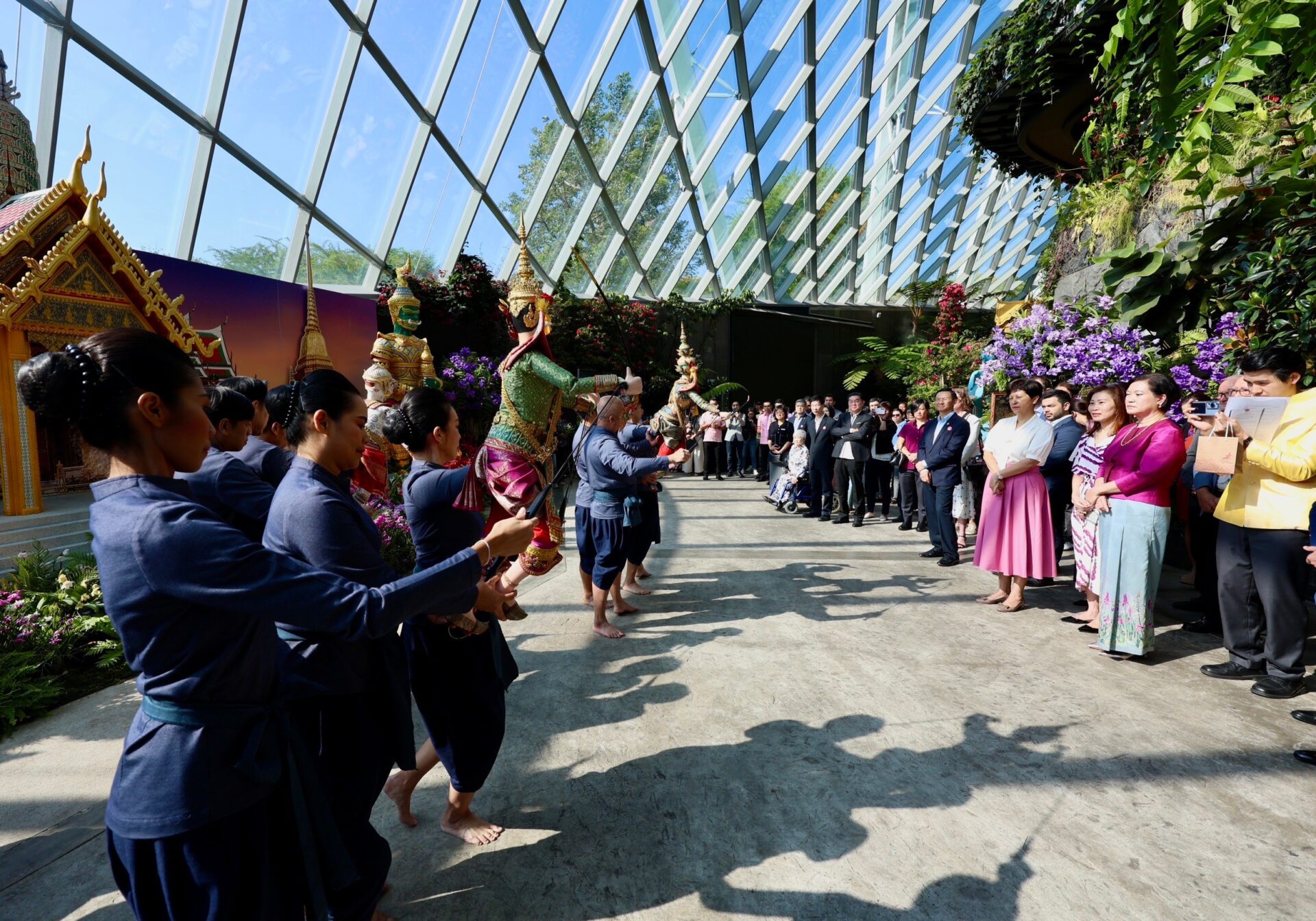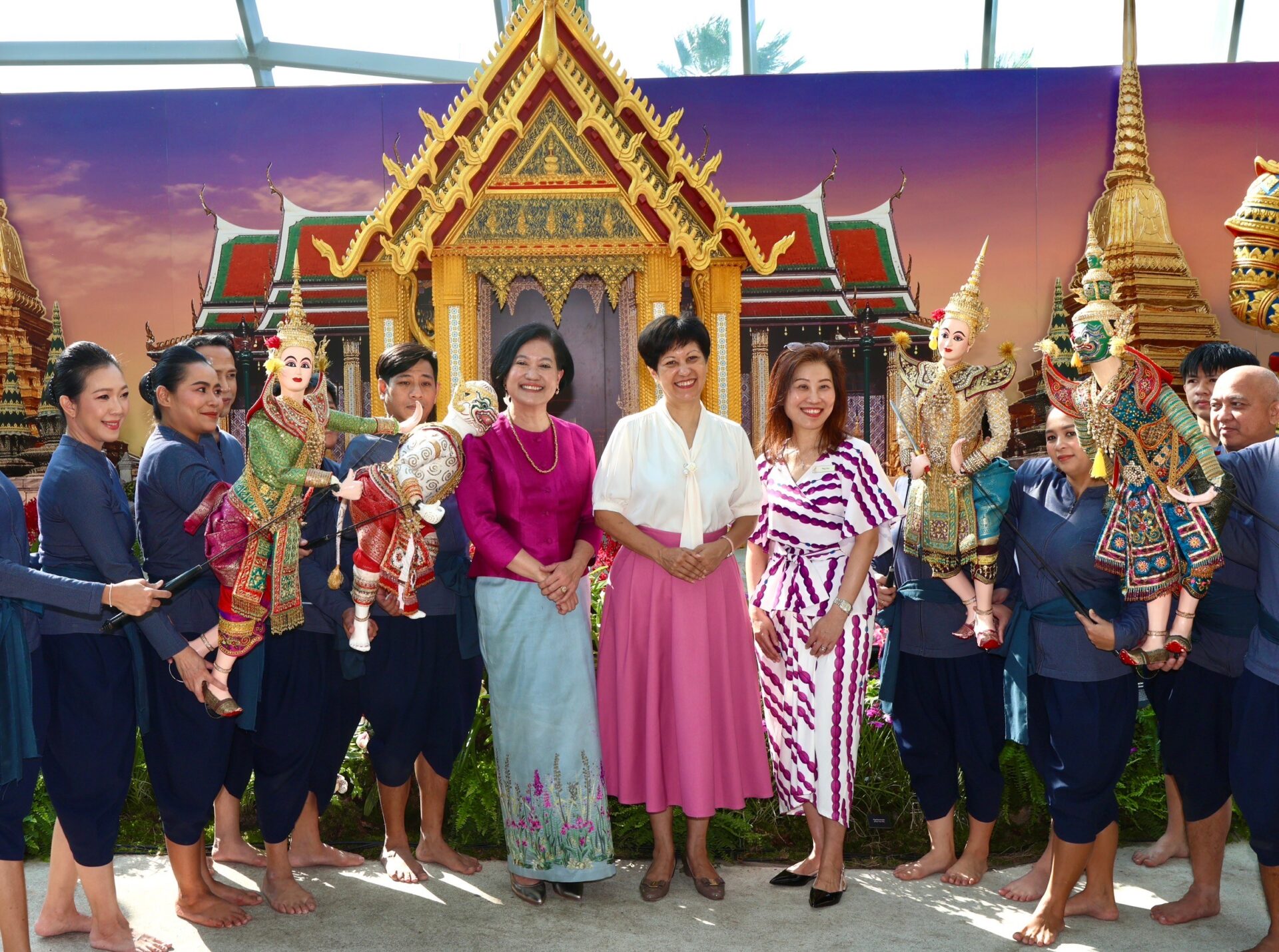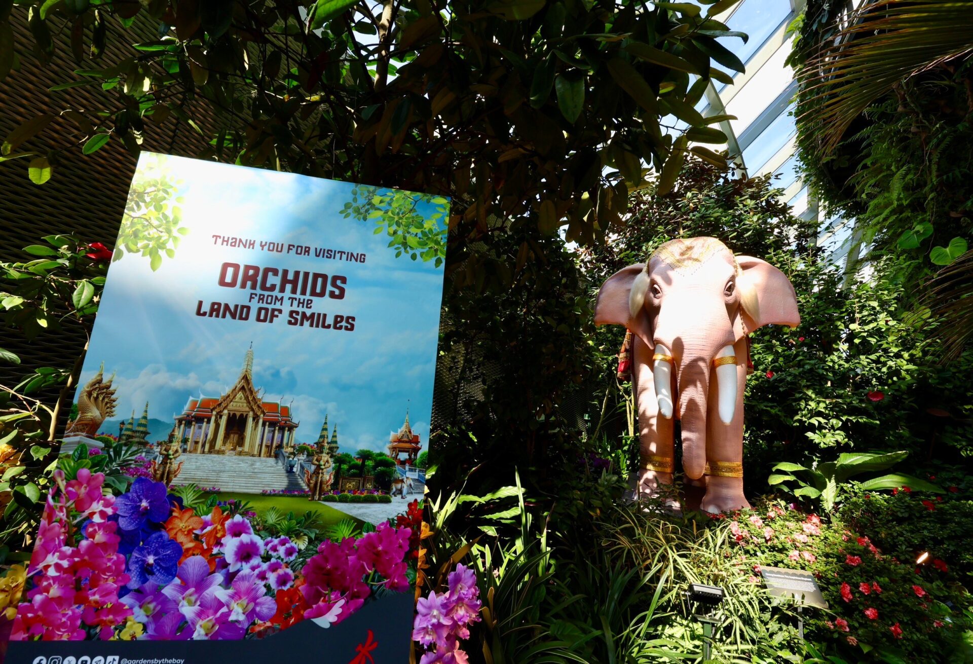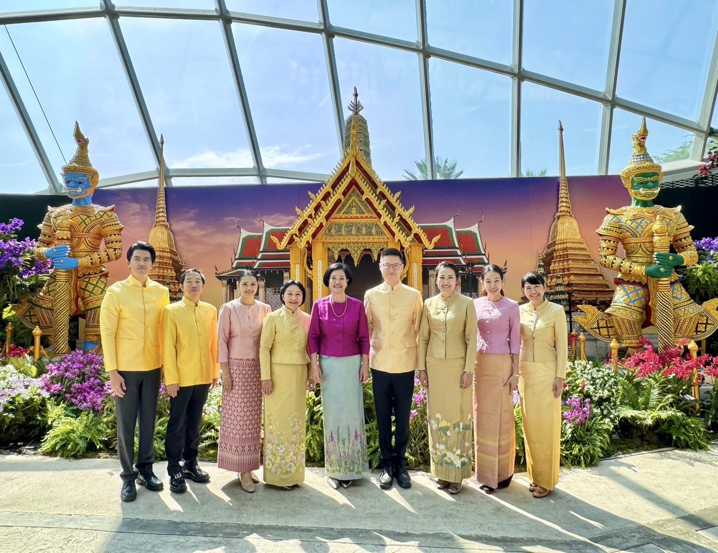 งานแสดงดอกไม้ฉลอง 60 ปี การทูตไทย-สิงคโปร์ ได้จำลองวัดพระแก้วที่มีองค์ประกอบโดดเด่น เช่น ปราสาทพระเทพบิดร เจดีย์ทอง และยักษ์ทวารบาล ทูตไทยพาเดินชมบอกเป็นการเผยแพร่มรดกทางวัฒนธรรมไทยให้แก่ชาวสิงคโปร์และนักท่องเที่ยวทั่วโลกที่มา Gardens by the Bay กระตุ้นให้เดินทางไปชมวัดพระแก้วภายในพระบรมมหาราชวัง ใจกลางกรุงเทพฯ นอกจากวัดสำคัญแล้ว ยังประกอบด้วยพระที่นั่งจักรีมหาปราสาท เป็นพระที่นั่งที่ผสมผสานสถาปัตยกรรมไทยแบบดั้งเดิมเข้ากับสถาปัตยกรรมยุโรปในศตวรรษที่ 19 ออกแบบและก่อสร้างโดยสถาปนิกชาวอังกฤษ จอห์น คลูนิช ผู้ประจำอยู่ที่สิงคโปร์ในสมัย ร. 5 เป็นผลสืบเนื่องจากการเสด็จฯ สิงคโปร์ของพระองค์ครั้งแรก ระหว่างลัดเลาะชมสวนสวย โชว์ผลงานช่างฝีมือไทยถ่ายทอดเป็นประติมากรรมสำคัญ อาทิ ช้างเผือกทรงคชาภรณ์ พญานาคเจ็ดเศียร บันไดพญานาค และรูปปั้นช้างสัตว์ประจำชาติไทยจัดแสดงท่ามกลางพรรณไม้ สร้างความแปลกใหม่ เป็นที่ชื่นชอบของนักท่องเที่ยว