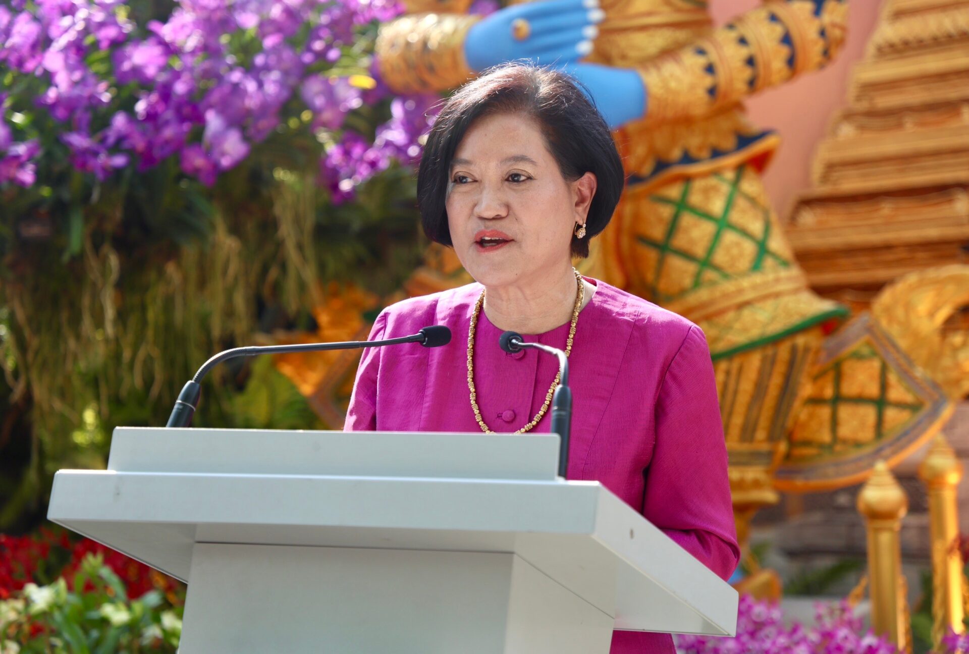 เอกอัครราชทูตอุรีรัชต์ฯ กล่าวในพิธีเปิดงานซึ่งตรงกับวันวาไลน์ไทน์ว่า กล้วยไม้เป็นดอกไม้ที่ได้รับความนิยมอย่างมากในประเทศไทยและสิงคโปร์ โดยประเทศไทยเป็นแหล่งกำเนิดของกล้วยไม้มากกว่า 1,000 สายพันธุ์ ในหลายวัฒนธรรม กล้วยไม้เป็นสัญลักษณ์ของความหรูหรา ความสง่างาม ความแข็งแกร่ง และความมั่งคั่ง ทั้งยังเกี่ยวข้องกับความรัก สันติภาพ ความชื่นชม และความสำเร็จ ด้วยมีคุณลักษณะที่หลากหลาย สะท้อนถึงสายสัมพันธ์แน่นแฟ้นสองประเทศ กล้วยไม้เติบโตได้ด้วยการดูแลเอาใจใส่ ความสัมพันธ์ไทย-สิงคโปร์ก็ได้รับการหล่อเลี้ยงด้วยความไว้วางใจและความเข้าใจซึ่งกันและกัน ตลอดจนความร่วมมือที่แน่นแฟ้นเป็นเวลากว่า 60 ปี วันนี้เรากำลังเก็บเกี่ยวผลแห่งมิตรภาพที่มั่นคงและความร่วมมือที่ก้าวหน้าในหลายมิติ