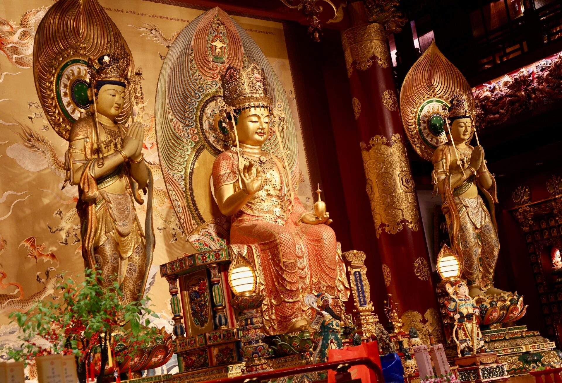 เส้นทางสานสัมพันธ์ทางการทูตไทย-สิงคโปร์ ยังนำพาเรามาที่ Buddha Tooth Relic Temple and Museum ที่คนไทยนิยมเรียกชื่อนี้กันว่า “วัดพระเขี้ยวแก้ว” วัดใหญ่สวยงามใจกลางย่านไชน่าทาวน์ของประเทศเกาะแห่งนี้ ที่นี่เป็นวัดพุทธที่โด่งดังที่สุดในสิงคโปร์ เป็นที่กราบไหว้บูชาของชาวพุทธทั่วโลก มีผู้คนจำนวนมากขึ้นกราบสักการะไม่ขาดสายด้วยแรงศรัทธา นับเป็นสิริมงคลแก่ชีวิตที่มีโอกาสมาสักการะพระเขี้ยวแก้วขององค์พระสัมมาสัมพุทธเจ้า ที่พระอุโบสถประดิษฐานพระประธาน พระศรีอริยเมตไตรย องค์สูงใหญ่ดูสงบงามและน่าเลื่อมใสศรัทธา เราขอพรและทำบุญเสริมดวงชะตาตามความเชื่อ ภายในวัดติดแอร์เย็นกาย สสบใจ