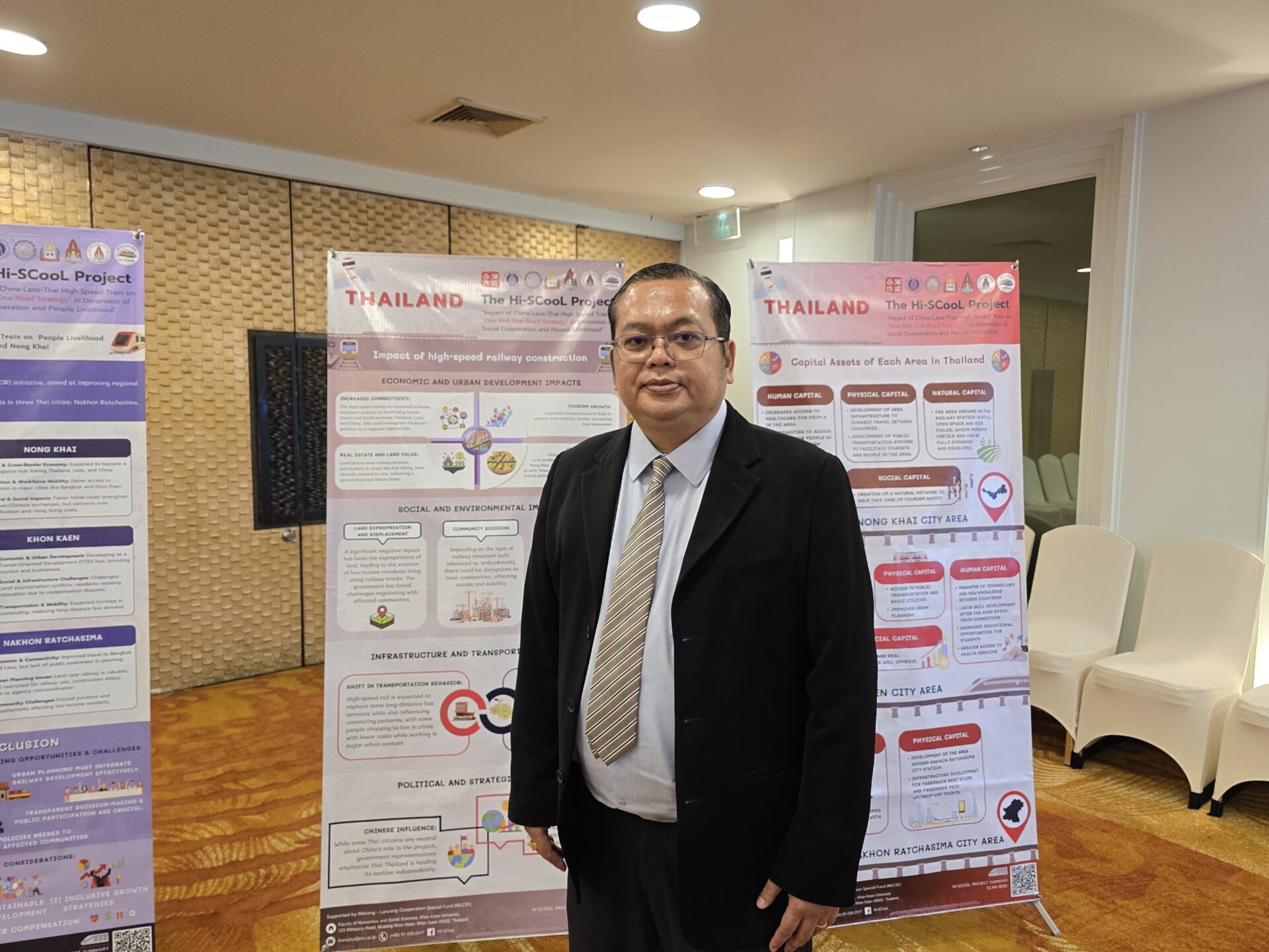 Lumngeune Souliyavong, PhD National University of Laos นักวิจัยลาว กล่าวว่า พื้นที่วิจัยและผลกระทบจากโครงการรถไฟความเร็วสูง การวิจัยครอบคลุมพื้นที่ 3 แห่ง ตามเส้นทางรถไฟความเร็วสูง ได้แก่ แขวงหลวงน้ำทา แขวงหลวงพระบาง และนครเวียงจันทน์ โดยแต่ละพื้นที่มีบทบาทและผลกระทบที่แตกต่างกัน โดยที่แขวงหลวงน้ำทา โครงการรถไฟความเร็วสูงจะช่วยเสริมบทบาทในการเป็นศูนย์กลางโลจิสติกส์ เชื่อมโยงการค้าระหว่างไทย ลาว และจีน โดยเฉพาะการส่งออกสินค้าหลัก เช่น ยางพาราและมันสำปะหลัง นอกจากนี้ ทางรถไฟยังเป็นตัวเร่งในการพัฒนาเศรษฐกิจและสังคมผ่านการขนส่งสินค้าและส่งเสริมการท่องเที่ยว อีกทั้งยังช่วยกระชับความสัมพันธ์ทางวัฒนธรรมระหว่างทั้งสามประเทศ อย่างไรก็ตาม ยังคงมีความกังวลเกี่ยวกับการพัฒนาเมืองและค่าครองชีพที่อาจสูงขึ้น