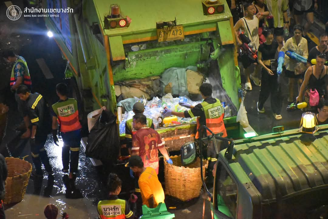 “โดยภายในการจัดสงกรานต์ย่านถนนสีลมในแต่วันหลังจากจบกิจกรรมเล่นน้ำ จะมีหน่วยคัดแยกขยะและพนักงงานกวาดขยะจะเข้ามาดูความสะอาดเรียบในพื้นที่ และในแต่ละจุดจะมีถังคัดแยกขยะ ไม่ว่าจะเป็นขยะพลาสติก ขยะเปียก และขยะแห้งต่างๆ เพื่อนำเข้าสู่กระบวนการจัดการได้อย่างถูกต้อง” ผู้ว่าฯ กทม. กล่าว
