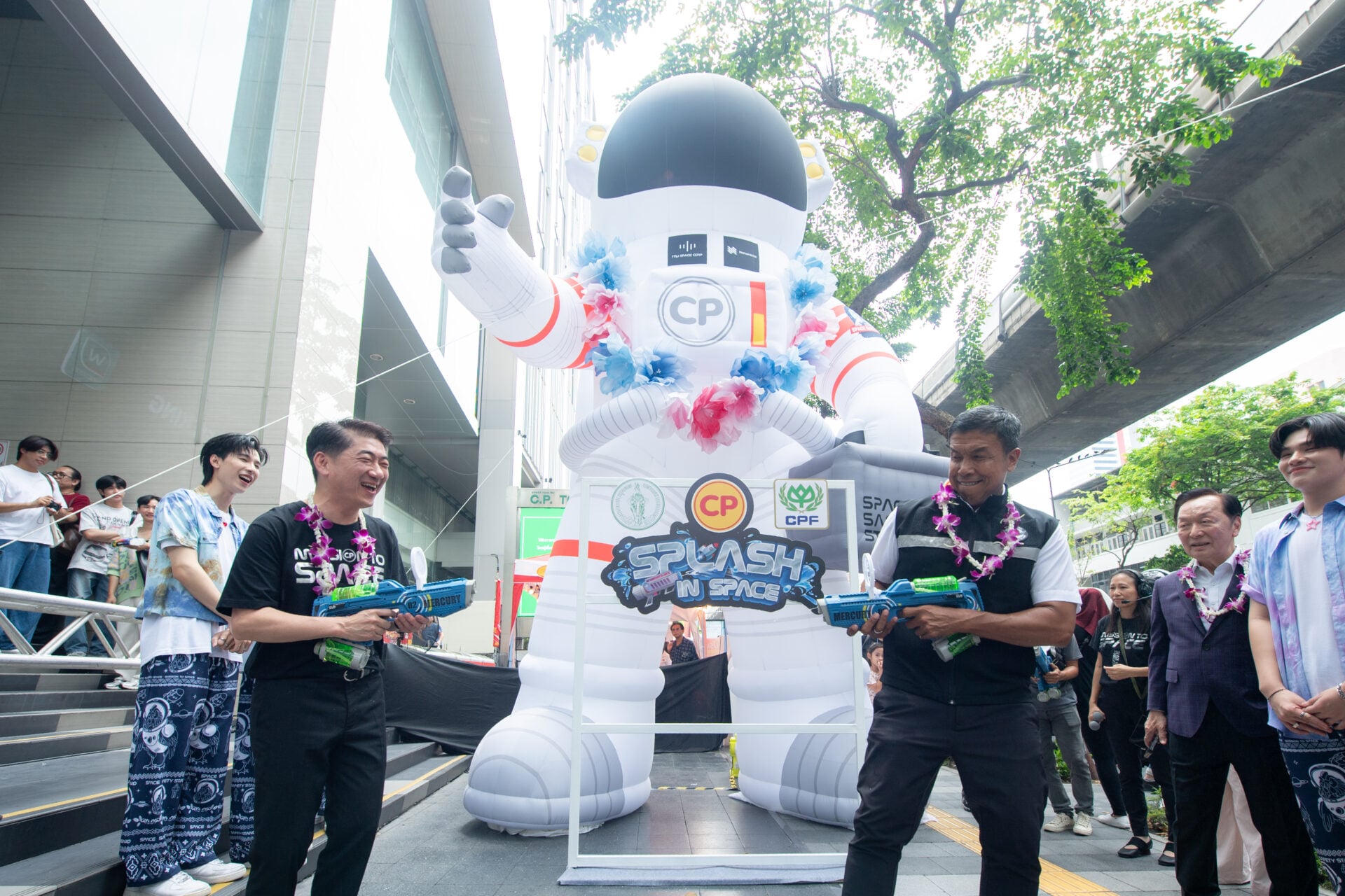 สำหรับ CP SPLASH IN SPACE ที่ซีพีเอฟจัดเต็มเพื่อมอบความสุขให้คนไทยในเทศกาลสงกรานต์ ปลุกย่านสีลมให้คึกคักระดับโลกในวันที่ 12-13 เมษายน 2568 เวลา 13.00 – 21.00 น. ภายในงานพบกับ 5 ไฮไลท์และความบันเทิงสุดล้ำที่พร้อมเสิร์ฟความสนุกแบบไร้ขีดจำกัด ไม่ว่าจะเป็น GIANT ASTRONAUT หุ่นนักบินอวกาศขนาดยักษ์สูงเท่าตึก 2 ชั้น ที่จะมาฉีดน้ำเพิ่มความชุ่มฉ่ำให้กับผู้ที่เดินผ่านบริเวณอาคาร C.P.Tower สีลม, SPLASH BATTLE เกมแข่งขันยิงปืนฉีดน้ำกับนักบินอวกาศชาย-หญิง โดยผู้ชนะจะได้รับ กางเกงไก่อวกาศ สุดพิเศษกลับบ้าน