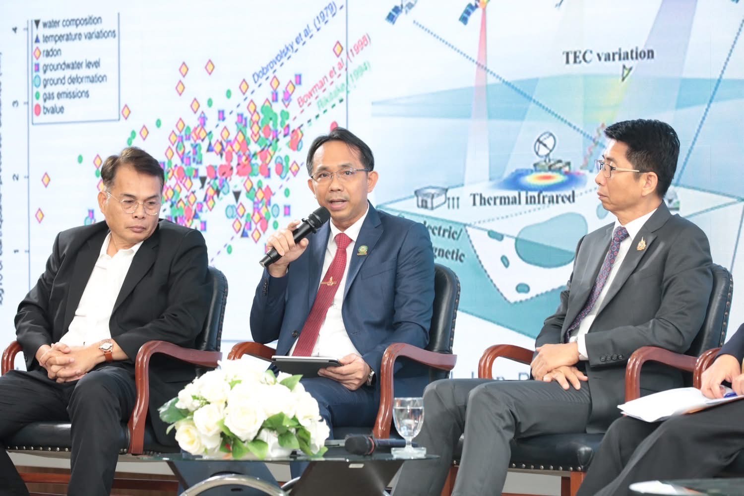 ดร.เฉลิมชัย ศรีอ่อน รมว.ทส. กล่าวว่า รอยเลื่อนมีพลังอยู่คู่กับประเทศไทย ทำให้แผ่นดินไหวเป็นภัยธรรมชาติที่ต้องปรับตัว อยู่อย่างปลอดภัย ลดความสูญเสีย ต้องเตรียมความพร้อมรับมือภัยพิบัติที่มีโอกาสเกิดขึ้นในอนาคตและการเตือนภัยหลังเหตุการณ์ที่ชัดเจน อีกทั้งมีแนวทางจัดตั้งศูนย์กลางบริการจัดการตอบโต้ภัยพิบัติ เน้นการใช้เทคโนโลยี มาปรับใช้กับร่วมความเห็นนักวิชาการที่มีความรู้ เพื่อแจ้งเตือนประชาชนอย่างรวดเร็วและแม่นยำ ล่าสุด ครม.อนุมัติงบกลางวงเงินกว่า 370 ล้านบาทที่ ทส.เสนอ เพื่อเฝ้าระวังและติดตามภัยพิบัติที่มีโอกาสจะเกิดขึ้น พร้อมแผนการติดตั้งเครื่องมือตรวจวัดครอบคลุมพื้นที่เสี่ยงกว่า 600 สถานีทั่วประเทศอีกด้วย การเสวนานี้ระดมความคิดจากผู้เชี่ยวชาญธรณีวิทยาและแผ่นดินไหวจะนำมากำหนดเป็นมาตรการการดำเนินการในอนาคต
