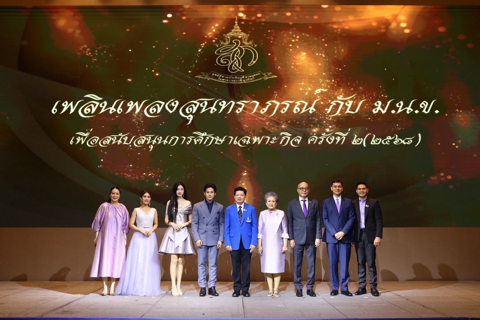 อ.สุรวัฒน์ ชมภูพงษ์ ประธานกรรมการบริหาร ม.น.ข. ในฐานะประธานจัดงาน กล่าวว่า ม.น.ข. ได้ดำเนินการจัดหาทุนและมอบทุนการศึกษาตามวัตถุประสงค์ของผู้บริจาคแบบ 100% ให้แก่นักเรียน นิสิต นักศึกษา ที่ขาดแคลนทุนทรัพย์มาอย่างต่อเนื่อง และเป็นการให้ที่ไม่สิ้นสุด ตลอด 60 ปีที่ผ่านมา มีนักเรียนได้รับทุนการศึกษาไม่ต่ำกว่า 25,000 คน ช่วยสร้างโอกาสให้เยาวชน อย่างไรก็ตาม ม.น.ข. เล็งเห็นว่า ยังมีเด็กและเยาวชนจำนวนหนึ่งมีคุณสมบัติไม่ตรงตามหลักเกณฑ์ที่ ม.น.ข. ได้กำหนดไว้แต่เดิม เขาเหล่านั้นควรมีโอกาสทางการศึกษาที่เท่าเทียมในการพัฒนาศักยภาพและเติบโตเป็นผู้ใหญ่ที่มีคุณภาพ เพื่อนำพาประเทศไปสู่ความเจริญก้าวหน้าทางเศรษฐกิจในระยะยาว จึงจัดงานกาล่าดินเนอร์การกุศลสุดพิเศษ ภายใต้ชื่องาน “เพลินเพลงสุนทราภรณ์ กับ ม.น.ข. เพื่อสนับสนุนการศึกษาเฉพาะกิจ” ครั้งที่ 2 ในวันที่ 7 มิ.ย. 2568 เวลา 17.30-21.30 น. ณ โรงแรมพูลแมน คิง เพาเวอร์ รายได้หลังหักค่าใช้จ่ายจะนำไปจัดสรรเป็นทุนการศึกษาให้แก่เด็กและเยาวชนที่ขาดแคลนทุนทรัพย์ แต่มีคุณสมบัติไม่ตรงตามหลักเกณฑ์เดิมให้ได้มีโอกาสทางการศึกษาตามวัตถุประสงค์ในโครงการ ม.น.ข.เฉลิมพระเกียรติ 6 รอบ (72 พรรษา) ต่อไป