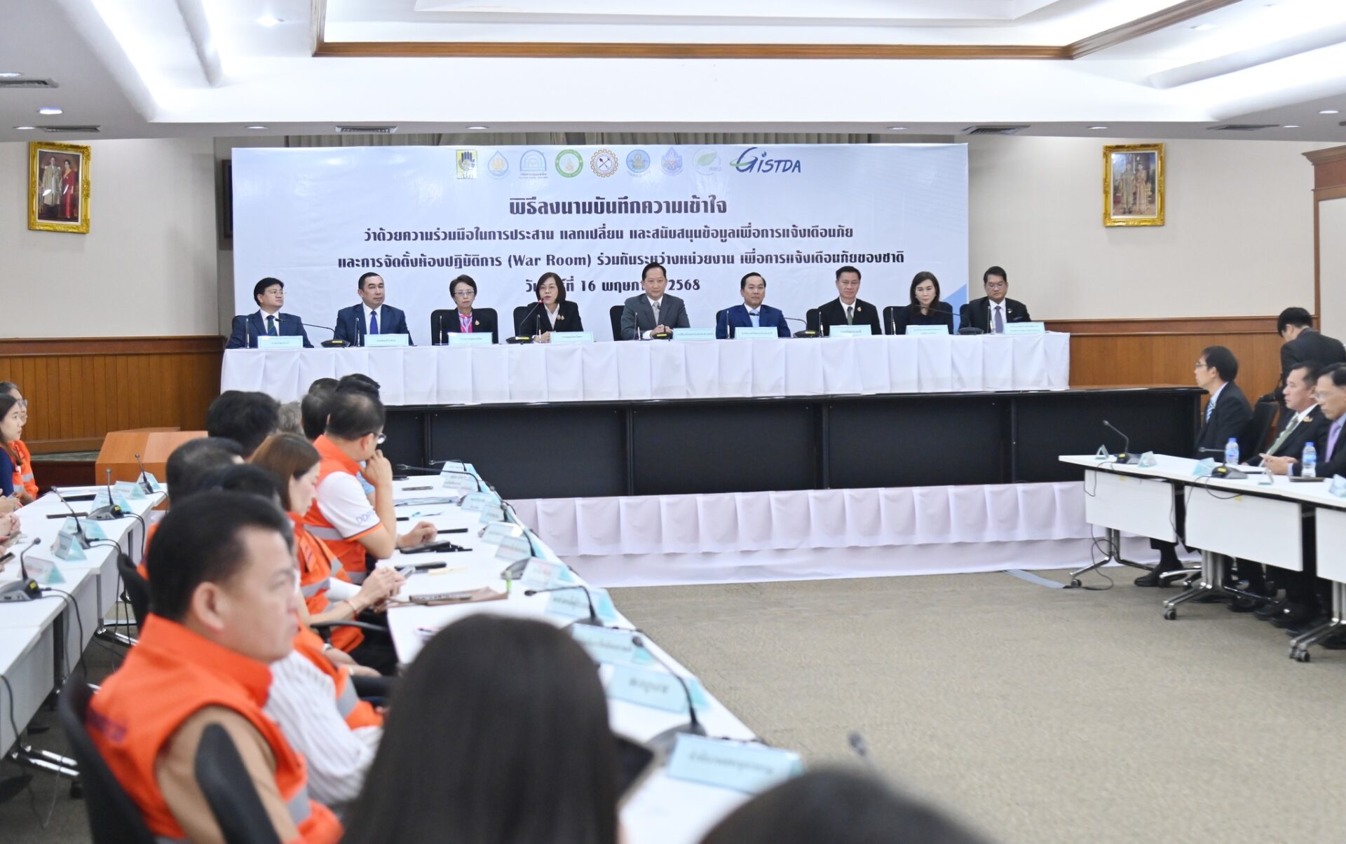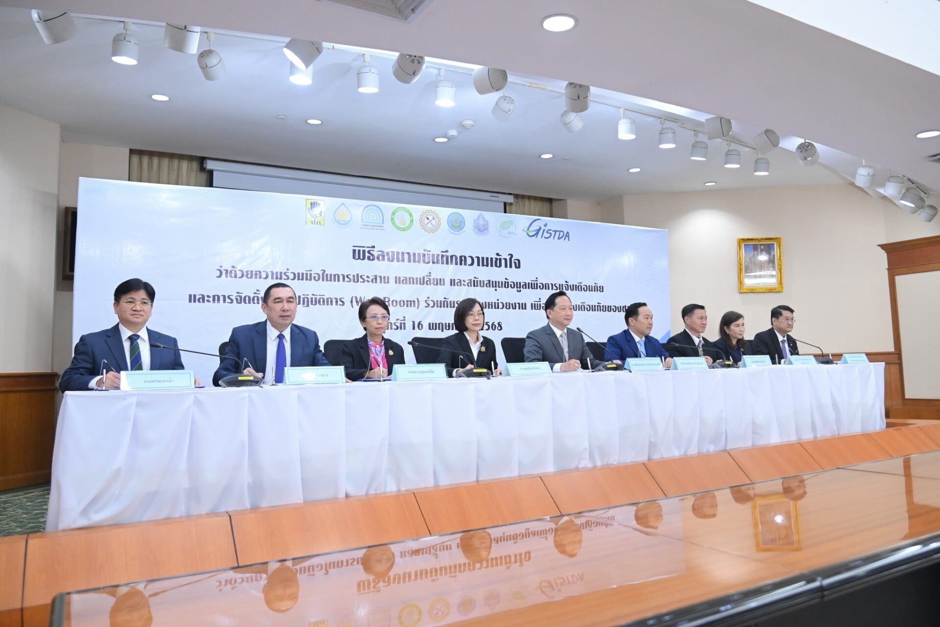 6 พ.ค. 2568- เวลา 14.00 น. ดร.สุกันยาณี ยะวิญชาญ อธิบดีกรมอุตุนิยมวิทยา พร้อมด้วย นายนัฐวุฒิ แดนดี รองอธิบดีกรมอุตุนิยมวิทยา ฝ่ายวิชาการ และคณะ ร่วมพิธีลงนามบันทึกความเข้าใจ ว่าด้วยความร่วมมือในการประสาน และแลกเปลี่ยน และสนับสนุนข้อมูลเพื่อการแจ้งเตือนภัย และการจัดตั้งห้องปฏิบัติการ ร่วมกันระหว่างหน่วยงาน เพื่อการแจ้งเตือนภัยของชาติ ร่วมกับ 8 หน่วยงาน ประกอบด้วยกรมป้องกันและบรรเทาสาธารณภัย สำนักงานทรัพยากรน้ำแห่งชาติ กรมควบคุมมลพิษ กรมทรัพยากรน้ำ กรมทรัพยากรธรณี กรมชลประทาน สำนักงานพัฒนาเทคโนโลยีอวกาศและภูมิสารสนเทศ (องค์การมหาชน) และสถาบันสารสนเทศทรัพยากรน้ำ (องค์การมหาชน) ร่วมลงนามบันทึกความเข้าใจว่าด้วยความร่วมมือในการประสาน แลกเปลี่ยน และสนับสนุนข้อมูลเพื่อการแจ้งเตือนภัยและการจัดตั้งห้องปฏิบัติการ (War Room) ร่วมกันระหว่างหน่วยงาน เพื่อการแจ้งเตือนภัยของชาติ โดยเฉพาะการ ณ ห้องประชุม 1 ปภ. กรมป้องกันและบรรเทาสาธารณภัย