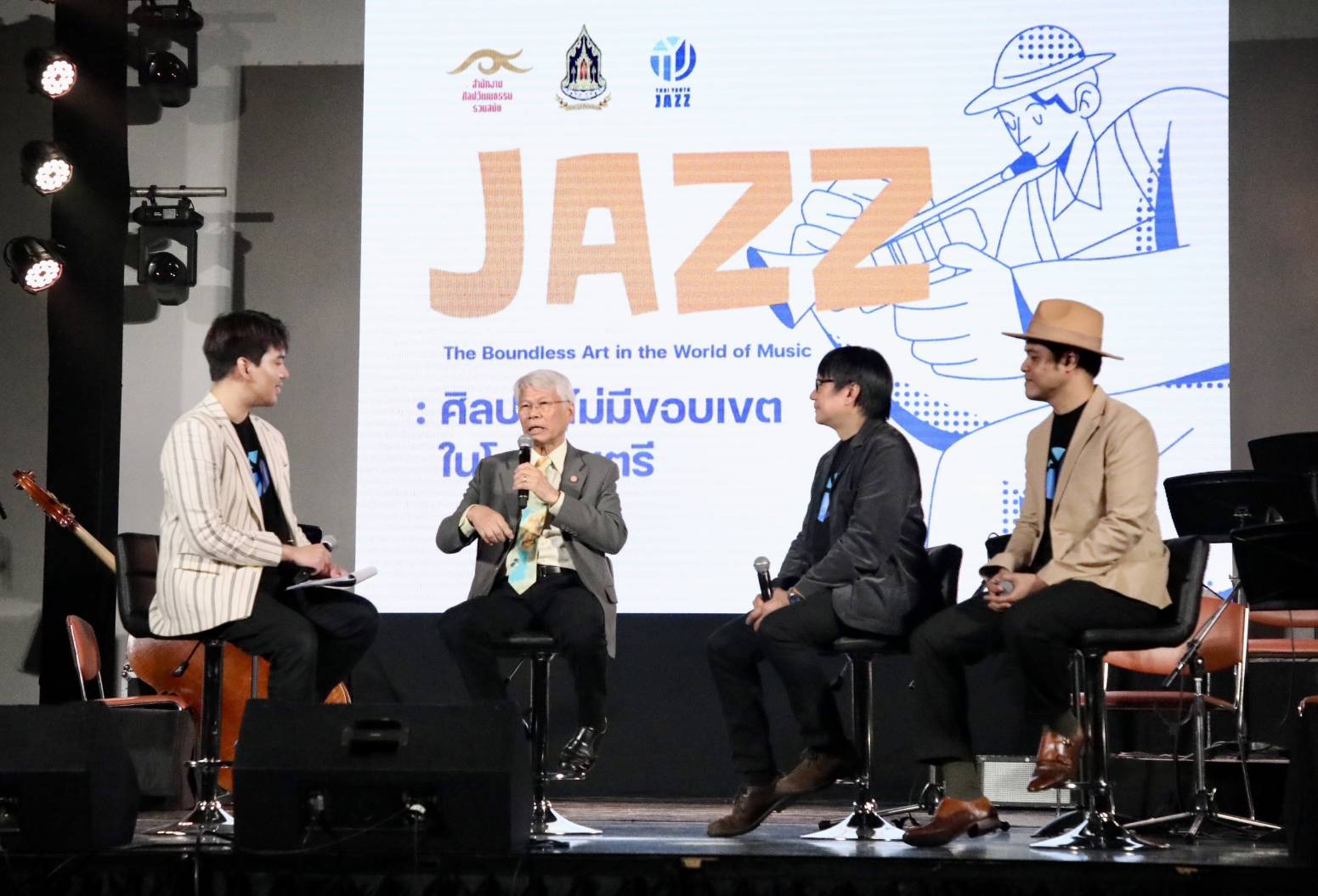 รศ.ดร.เด่น อยู่ประเสริฐ ศิลปินศิลปาธร สาขาดนตรี ปี 2552 และคณบดีวิทยาลัยดนตรี มหาวิทยาลัยรังสิต กล่าวว่า ดนตรีแจ๊สเชื่อมโยงวัฒนธรรมได้ ไม่ว่าจะมาจากชาติไหนสามารถเล่นดนตรีร่วมกันได้ เราสามารถถ่ายทอดวัฒนธรรมผ่านดนตรีแจ๊ส ยูเนสโกประกาศให้ดนตรีแจ๊สเป็นศิลปะที่ทรงคุณค่า กำหนดให้ทุกวันที่ 30 เมษายน เป็นวันแจ๊สสากล แสดงถึงการยอมรับและยกย่องดนตรีแจ๊สในระดับโลก ที่สำคัญไม่ว่าจะมาจากชาติไหนสามารถเล่นดนตรีแจ๊สร่วมกัน จากประสบการณ์ได้เห็นโรงเรียนมัธยมที่สหรัฐล้วนมีวงดนตรีแจ๊สเยาวชน ญี่ปุ่นจัดประกวดวงดนตรีบิ๊กแบนระดับเยาวชน ซึ่งเยาวชนมีฝีมือดีมาก เด็กไทยเก่งขึ้นมาก ถึงเวลามีวงดนตรีแจ๊สเยาวชนระดับชาติ