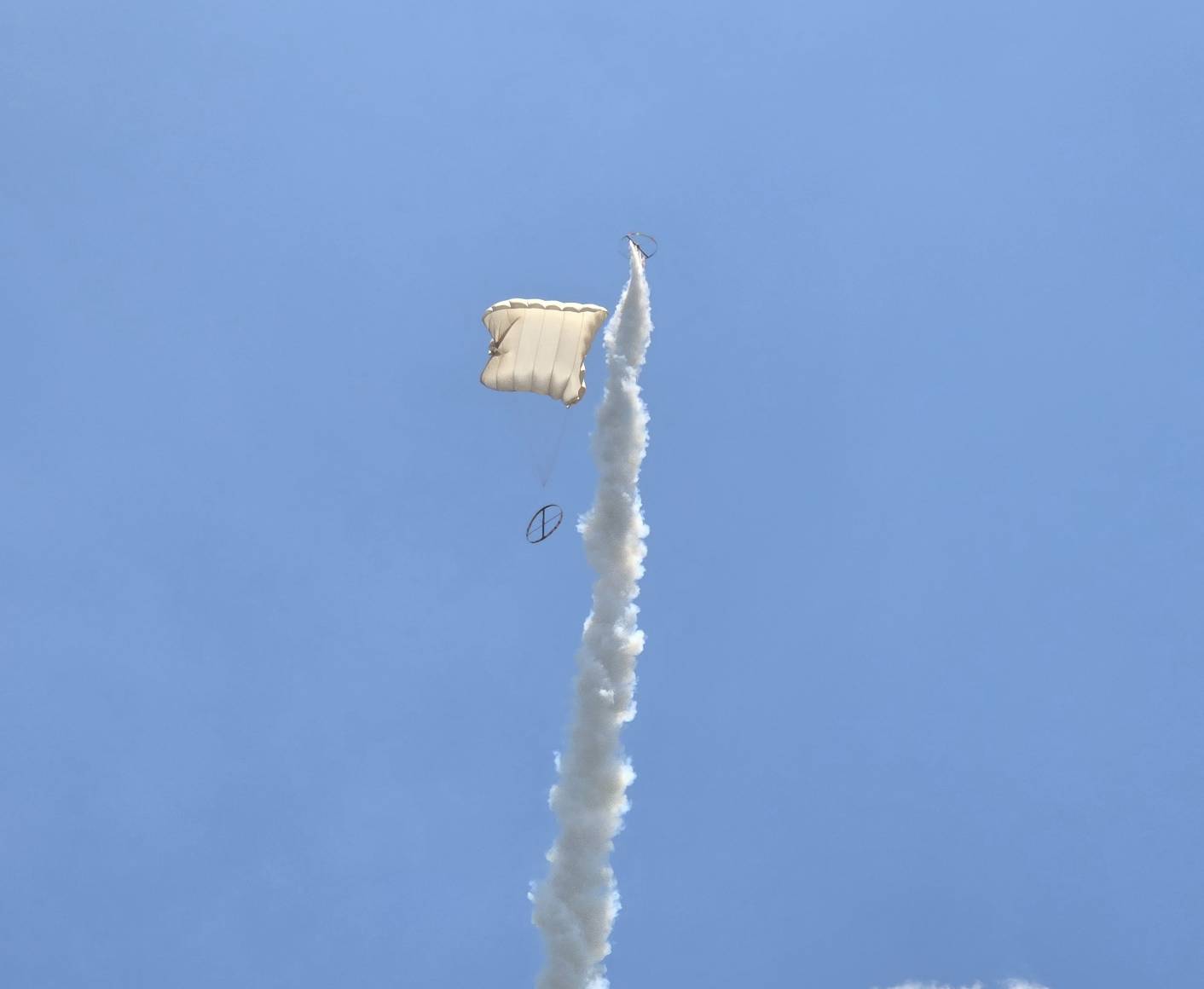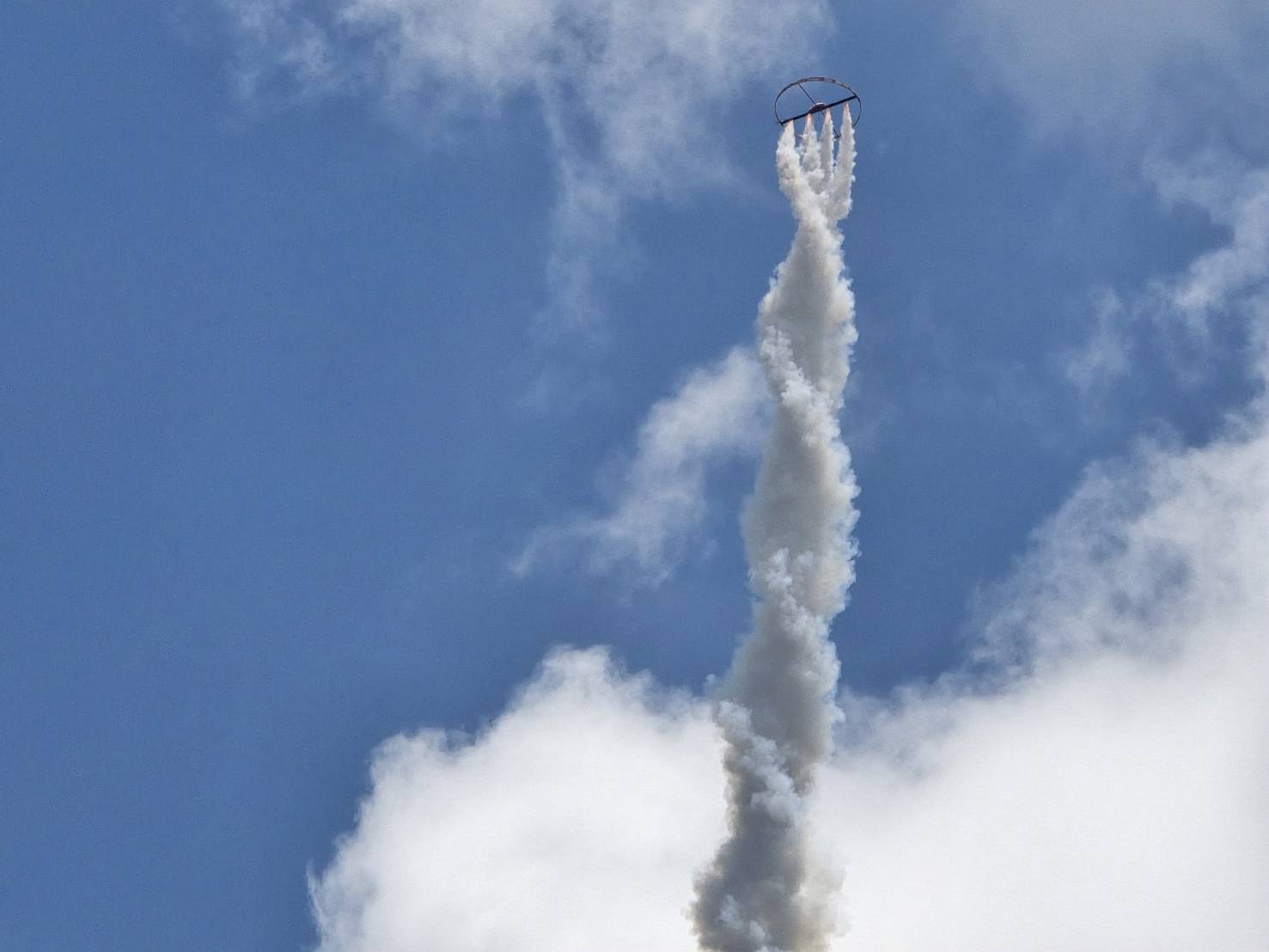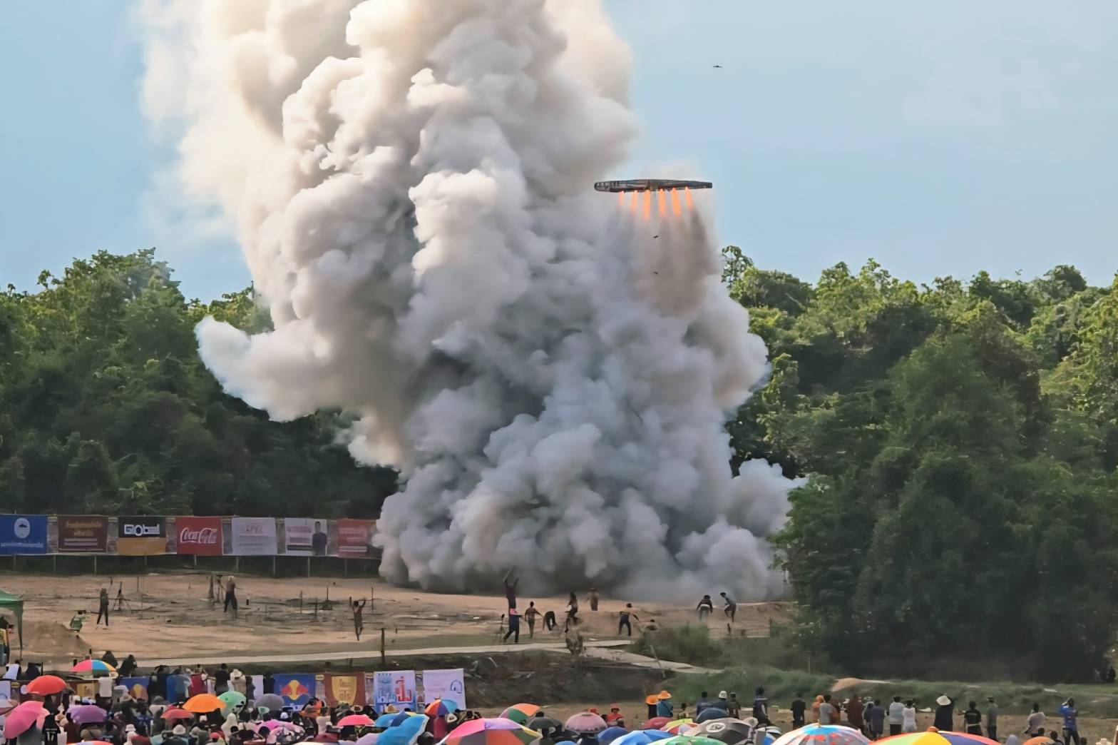 เปลวไฟถูกจุด เสียงกึกก้องจากปลายกระบอกบั้งไฟดังขึ้นทันที ควันสีขาวพวยพุ่งออกมาคลุ้งไปทั่ว ก่อนที่ตัวบั้งไฟตะไลจะเริ่มหมุนด้วยความเร็ว ทะยานพุ่งออกจากกลุ่มควันสู่ท้องฟ้าอย่างสง่างาม ผู้ชมทั้งลานส่งเสียงเฮลั่น พร้อมเสียงปรบมือที่ดังกึกก้อง ไม่ต่างจากตอนที่บั้งไฟตะไลสองล้านถูกจุดขึ้นก่อนหน้านี้ แม้ร่มไม่กาง แต่แค่ได้เห็นบั้งไฟพุ่งขึ้นสูงเสียดฟ้า ทุกคนก็ตื่นเต้นและประทับอย่างมาก