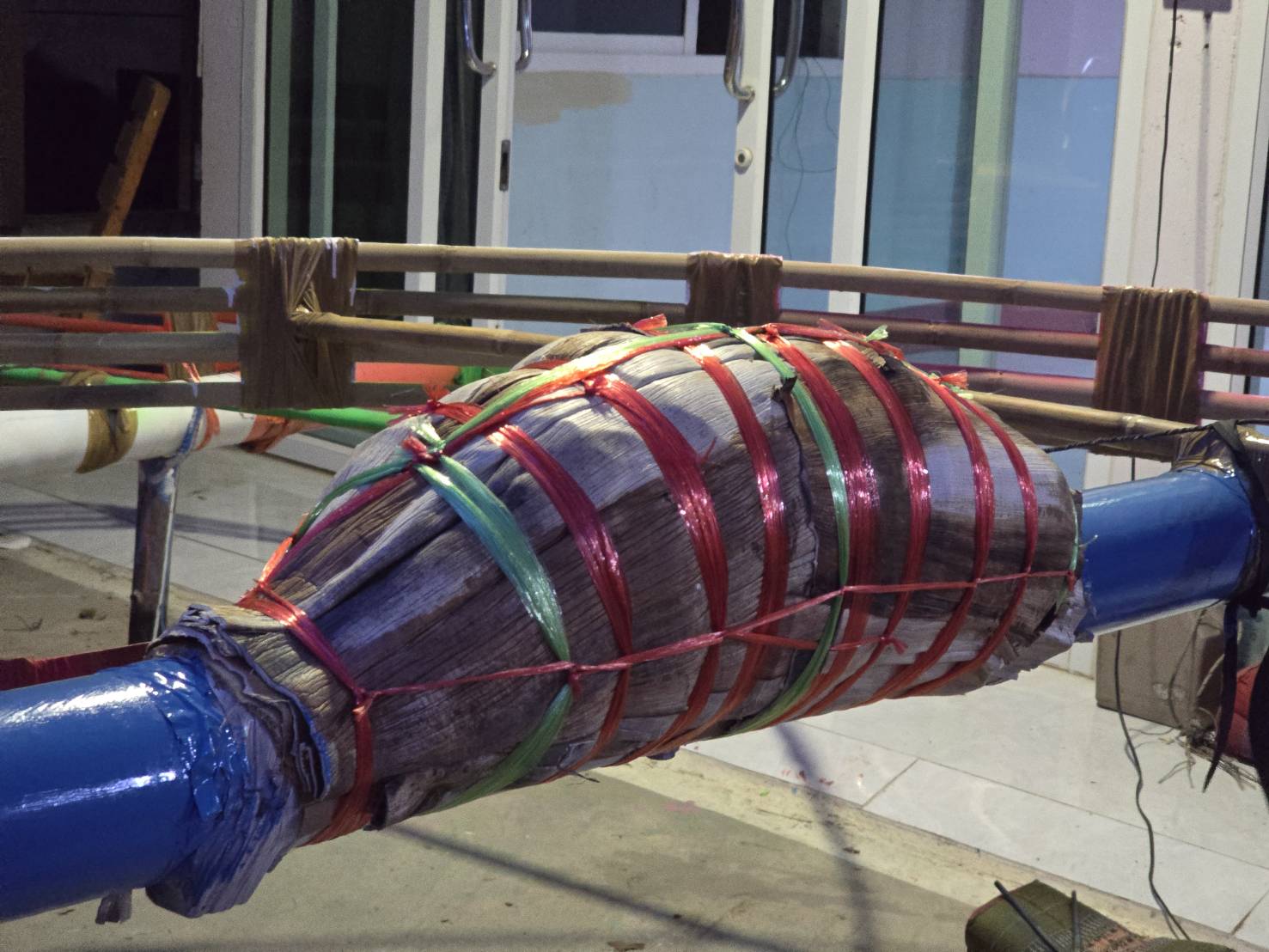 หลังจากพูดคุยพอประมาณ คุณตาหนันก็พาเราไปชมบ้านที่ทำบั้งไฟตะไล มาถึงลานหน้าบ้านหลังหนึ่ง ที่นี่คือจุดรวมพลของชาวบ้านผู้กำลังง่วนอยู่กับการผูกร่ม ขั้นตอนสุดท้ายก่อนที่บั้งไฟตะไลจะพร้อมขึ้นสู่ฟ้า เหนื่อยๆก็นั่งพักสังสรรค์เปิดเพลงฟังให้ผ่อนคลาย ก่อนจะถึงวันประชันบั้งไฟตะไลอย่างยิ่งใหญ่ในวันงาน