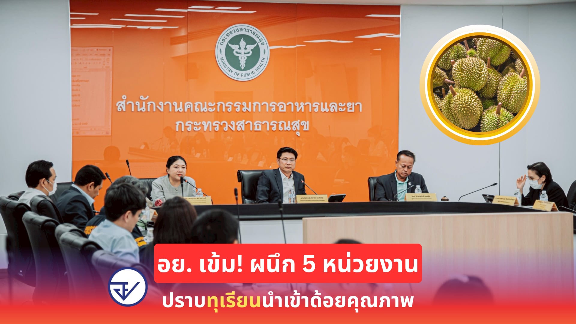 อย. เปิดแผนรุก ยกระดับมาตรการตรวจสอบทุเรียนนำเข้า ผนึกกำลัง 5 หน่วยงานหลัก ร่วมดำเนินการให้ครอบคลุมทุกมิติ เพื่อปกป้องผู้บริโภคจากทุเรียนด้อยคุณภาพ