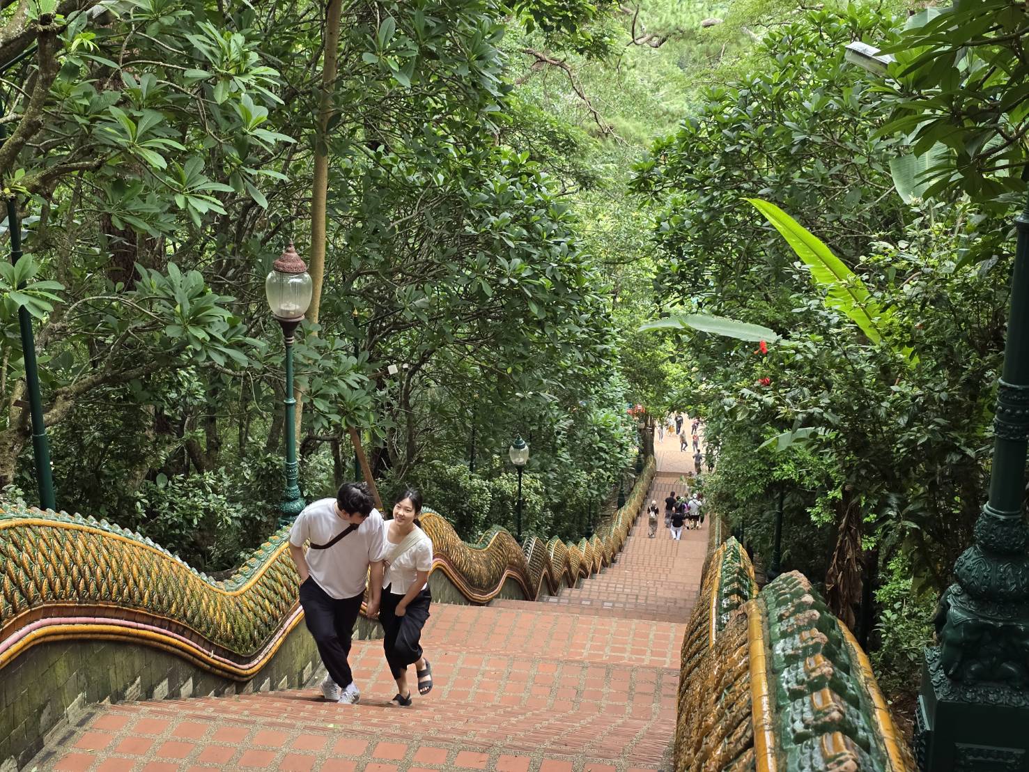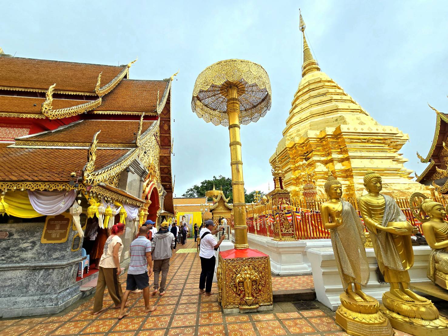 มาถึงวัดที่สอง หากพูดถึงเชียงใหม่ หนึ่งในสถพระเจ้าเก้าตื้อพระประธานในวิหารานที่ศักดิ์สิทธิ์ที่ไม่ควรพลาดก็คือ วัดพระธาตุดอยสุเทพราชวรวิหาร วัดชื่อดังที่ตั้งอยู่ภายในอุทยานแห่งชาติดอยสุเทพ-ปุย อยู่ห่างจากตัวเมืองเชียงใหม่เพียงราว 15 กิโลเมตร แม้เส้นทางจะคดเคี้ยวขึ้นเขาเล็กน้อย แต่ระหว่างทางก็เต็มไปด้วยวิวธรรมชาติที่สวยงาม จนเผลอหลับแป๊บเดียวก็ถึงแล้ว