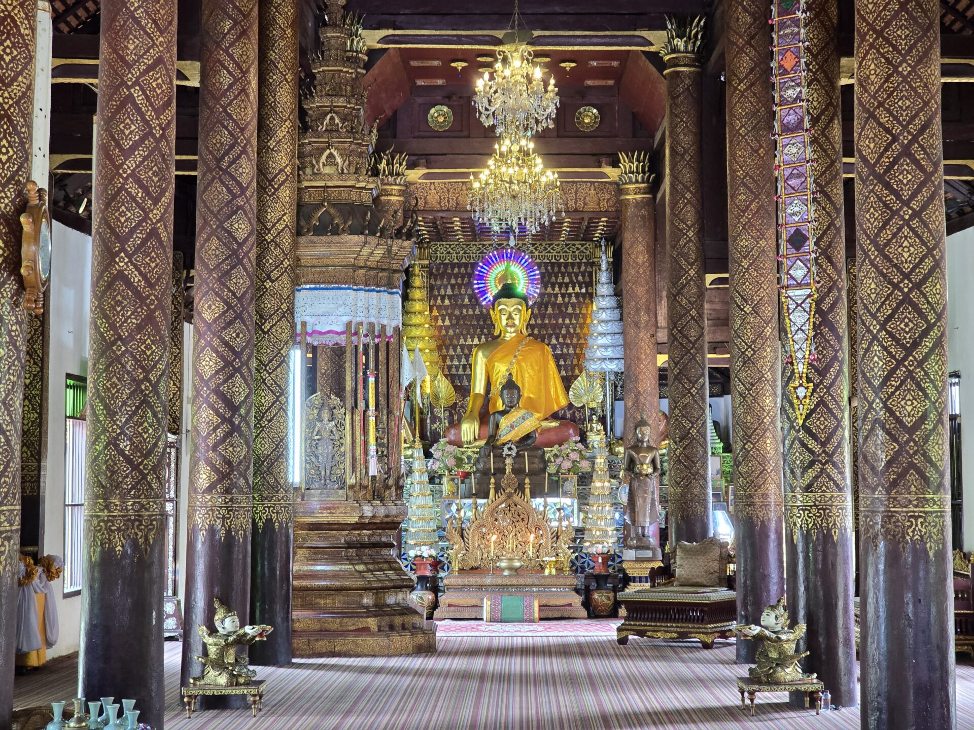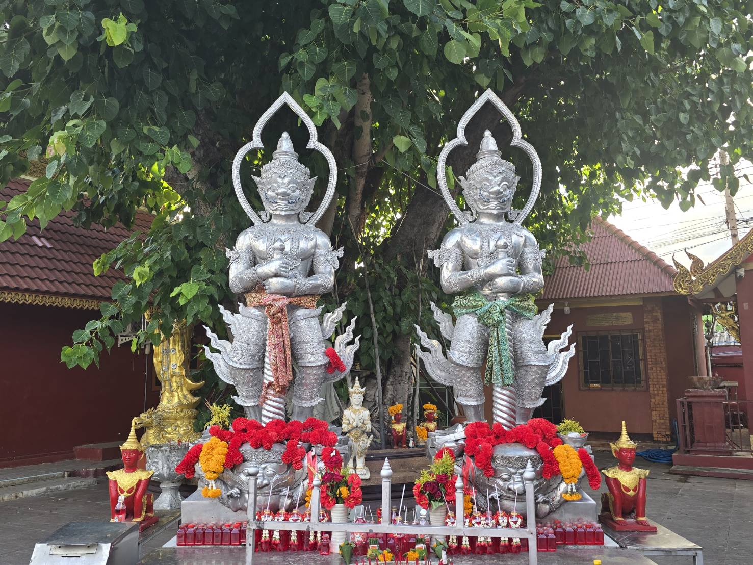 เย็นวันเสาร์ในเชียงใหม่ หากได้มาเดินเล่นที่ถนนคนเดินวัวลาย นอกจากของกิน ของฝาก และดนตรีสดแล้ว อย่าลืมแวะตรอกเล็ก ๆ ที่ซ่อน วัดศรีสุพรรณ ไว้อย่างงดงาม จุดเด่นของวัดคือ อุโบสถเงินหลังแรกของโลก ที่ตกแต่งด้วยแผ่นเงินแกะลายทั้งภายนอกและภายใน สะท้อนความวิจิตรของฝีมือช่างเงินในชุมชนวัวลาย ด้านหน้าอุโบสถมี “ท้าวเวสสุวรรณเงินคู่” ยืนเด่น เป็นที่เคารพของผู้มาขอพรเรื่องโชคลาภและปัดเป่าสิ่งไม่ดี