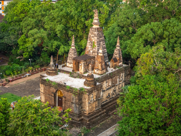 5.วัดบุปผาราม (วัดสวนดอก) เป็นวัดที่แสดงให้เห็นถึงความสัมพันธ์ของอาณาจักรล้านนา และอาณาจักรสุโขทัย ทั้งระบบแบบแผนผังและงานศิลปกรรมที่มีอิทธิพลของศิลปะสุโขทัย และศิลปะพุกาม ที่ได้รับอิทธิพลมาจากศิลปะลังกา 6.วัดอุโมงค์ สวนพุทธธรรม มีเจดีย์ทรงระฆังต้นแบบของล้านนา ได้รับอิทธิพลจากศิลปะพุกามที่ยังรักษารูปแบบไว้ได้มากที่สุดเพียงองค์เดียว