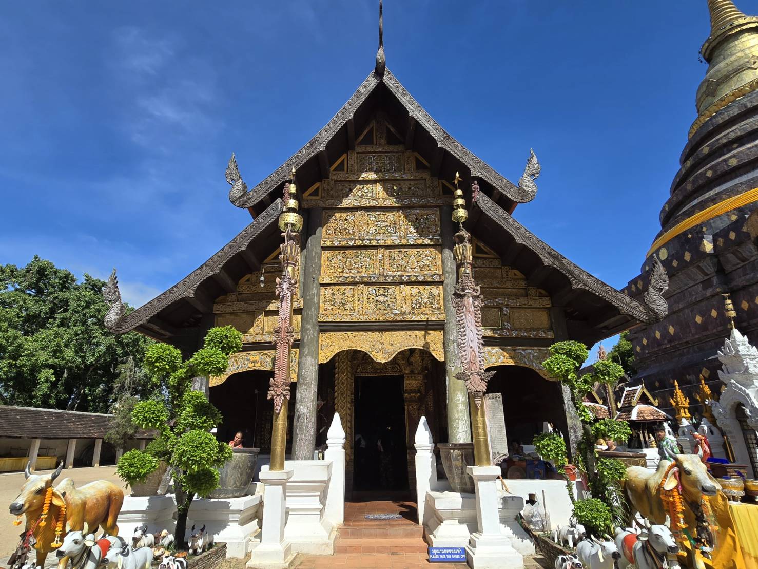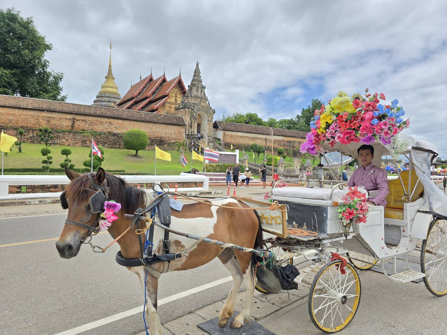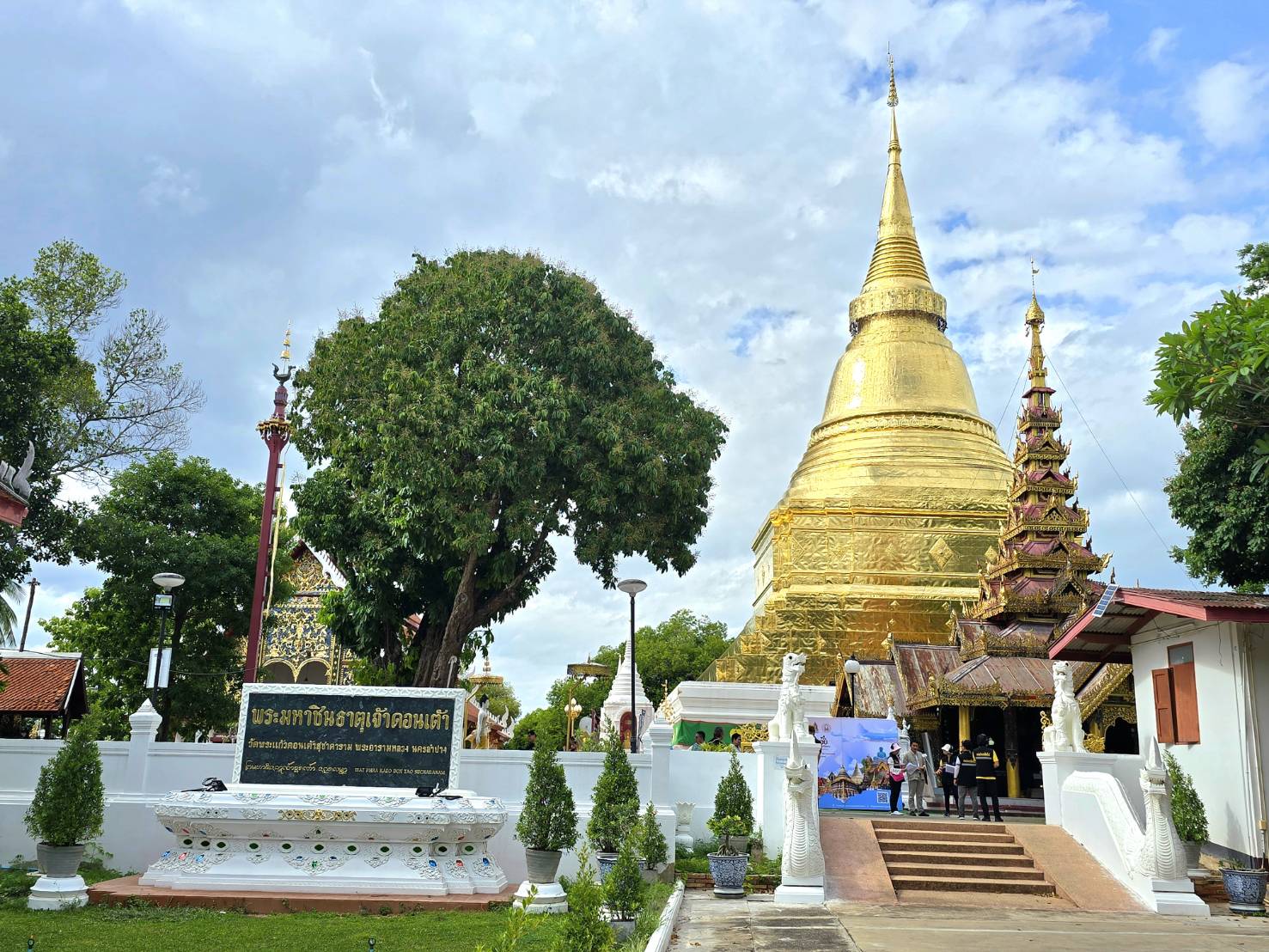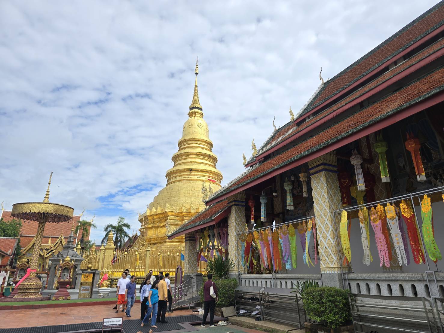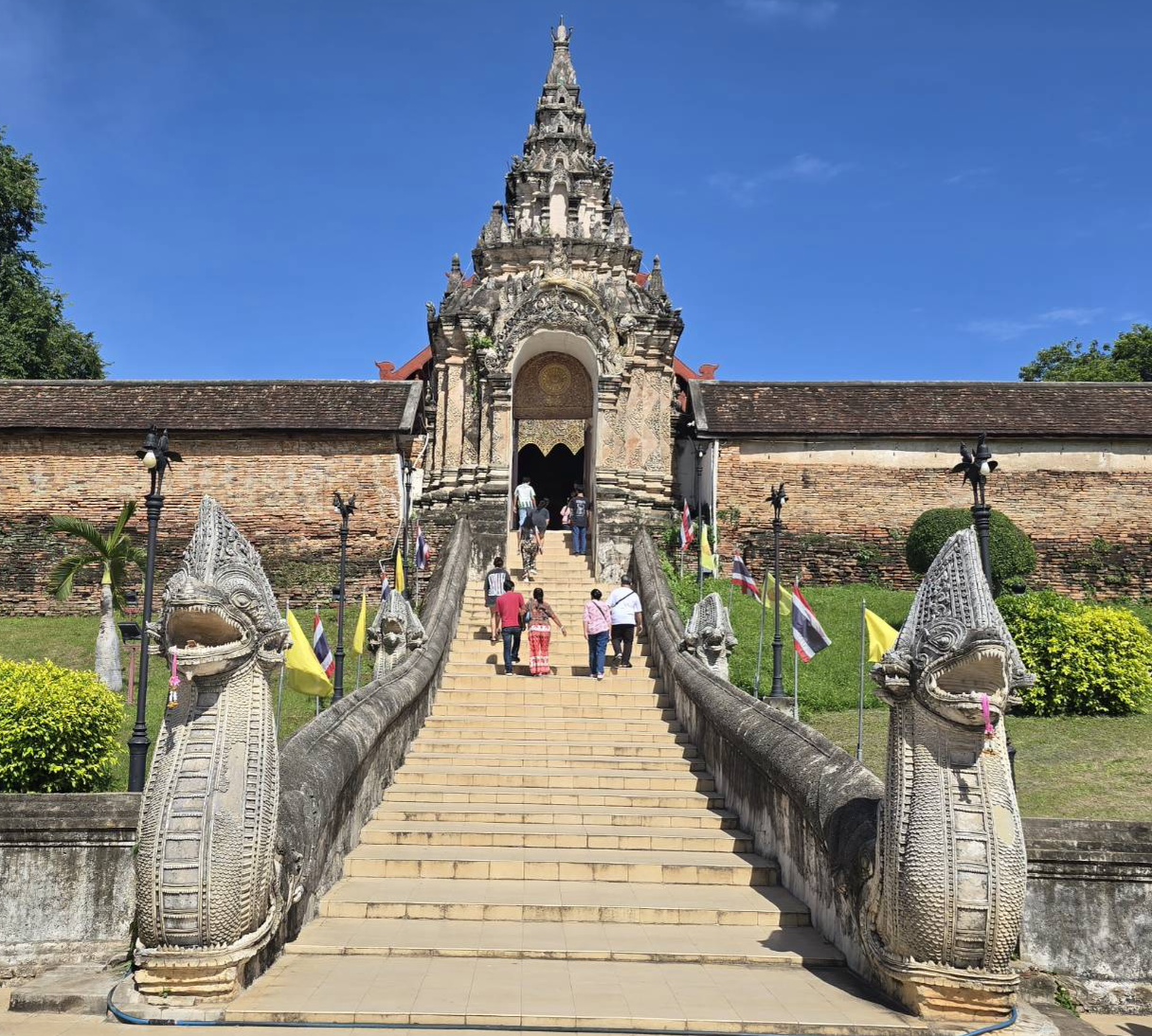 จากลำปางโฉบมาแวะที่ลำพูน สักการะวัดพระธาตุหริภุญชัยฯ จ.ลำพูน ปูชนียสถานคู่บ้านคู่เมืองของลำพูน ที่ตั้งตระหง่านอยู่ใจกลางเมืองมานานกว่าพันปี เป็นจุดหมายสำคัญที่ไม่ควรพลาดเมื่อมาเยือนดินแดนล้านนาแห่งนี้ ก่อนจะได้เข้าไปสัมผัสความงามภายในวัด ต้องเดินลอดผ่านซุ้มประตูโบราณที่มี สิงห์เฝ้ายามยืนตระหง่านอยู่สองข้าง สันนิษฐานว่าสร้างขึ้นตั้งแต่สมัยพระเจ้าอาทิตยราช เมื่อครั้งทรงถวายวังให้เป็นวัดหลวงของเมือง