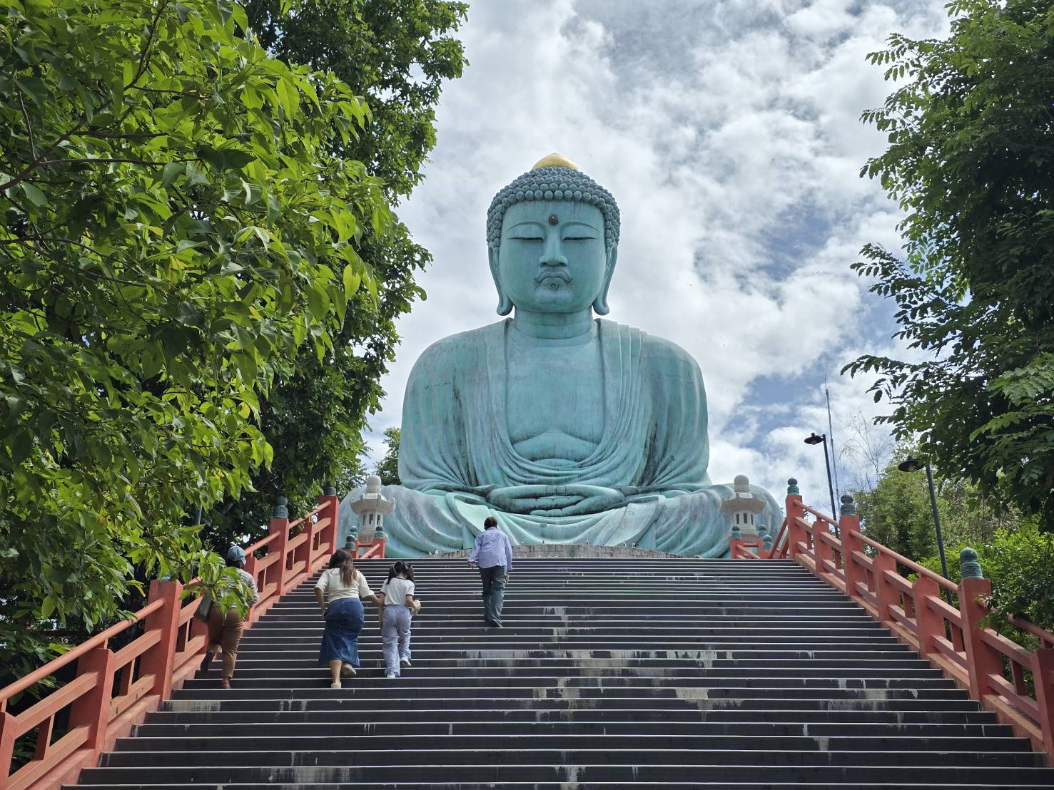 มาถึงวัดสุดท้ายที่ วัดพระธาตุดอยพระฌาน ในอ.แม่ทะ ตั้งอยู่บนยอดเขา โอบล้อมด้วยต้นไม้เขียวขจีและอากาศบริสุทธิ์ เย็นสบายราวกับหลุดเข้าไปในอีกโลกหนึ่ง อีกมุมก็ให้บรรยากาศชวนให้รู้สึกเหมือนอยู่ในญี่ปุ่น เพราะมีการตกแต่งให้เข้ากับ พระพุทธรูปไดบุตสึ สีเขียวดั่งหยก องค์ใหญ่สง่างาม ขนาดหน้าตักกว้างถึง 14 เมตร ประดิษฐานเด่นเป็นสง่าอยู่บนยอดเขา ให้ความรู้สึกคล้ายได้มาเยือนวัดโคโตคุ เมืองคามาคุระของญี่ปุ่นเลยทีเดียว
