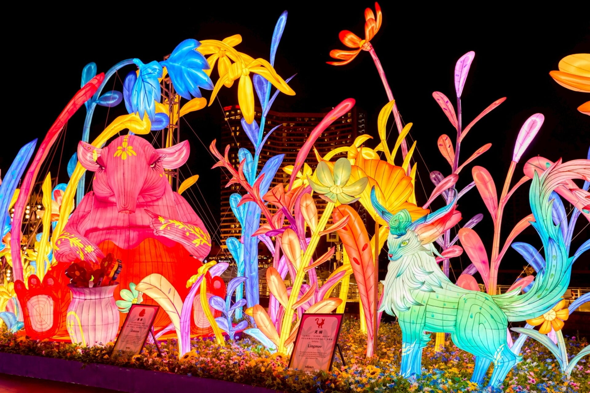 เทศกาลโคมไฟยู่หยวนจากนครเซี่ยงไฮ้ที่มีประวัติยาวนาว ยูเนสโกขึ้นทะเบียนเป็นมรดกทางวัฒนธรรมที่จับต้องไม่ได้ของจีน นับเป็นครั้งแรกในประวัติศาสตร์ที่เทศกาลโคมไฟอันงดงามและยิ่งใหญ่ได้เดินทางมาเยือนประเทศไทย จัดแสดงในธีม “จิตวิญญาณแห่งภูผาและมหาสมุทร” นำแรงบันดาลใจจากคัมภีร์โบราณ“ซานไห่จิง” หรือ “คัมภีร์ขุนเขาและท้องทะเล” มารวมเข้ากับแนวคิด “เกาะแห่งเจ้าพระยา” จำลองเป็นดินแดนมหัศจรรย์ริมแม่น้ำเจ้าพระยา ที่ดูราวกับเป็นเกาะลอยน้ำ ซึ่งประดับประดาด้วยแสงสีหลากหลายของโคมไฟร่วมสมัย ผสานเทคนิคแสง เงา และอินเตอร์แอคทีฟ ให้โคมไฟแต่ละกลุ่มเปรียบเสมือนเกาะลึกลับที่กระจายตัวอยู่ทั่วบริเวณ โดยมีสิ่งมีชีวิตจากคัมภีร์ขุนเขาและท้องทะเลรอคอยให้ผู้ชมเข้าไปสำรวจและค้นพบประสบการณ์ใหม่อันตระการตาและน่าประทับใจ นับเป็นการนำเสนอภาพแห่งมิตรภาพอันงดงามระหว่างจีนกับไทยในรูปแบบที่ชวนตื่นตาตื่นใจ