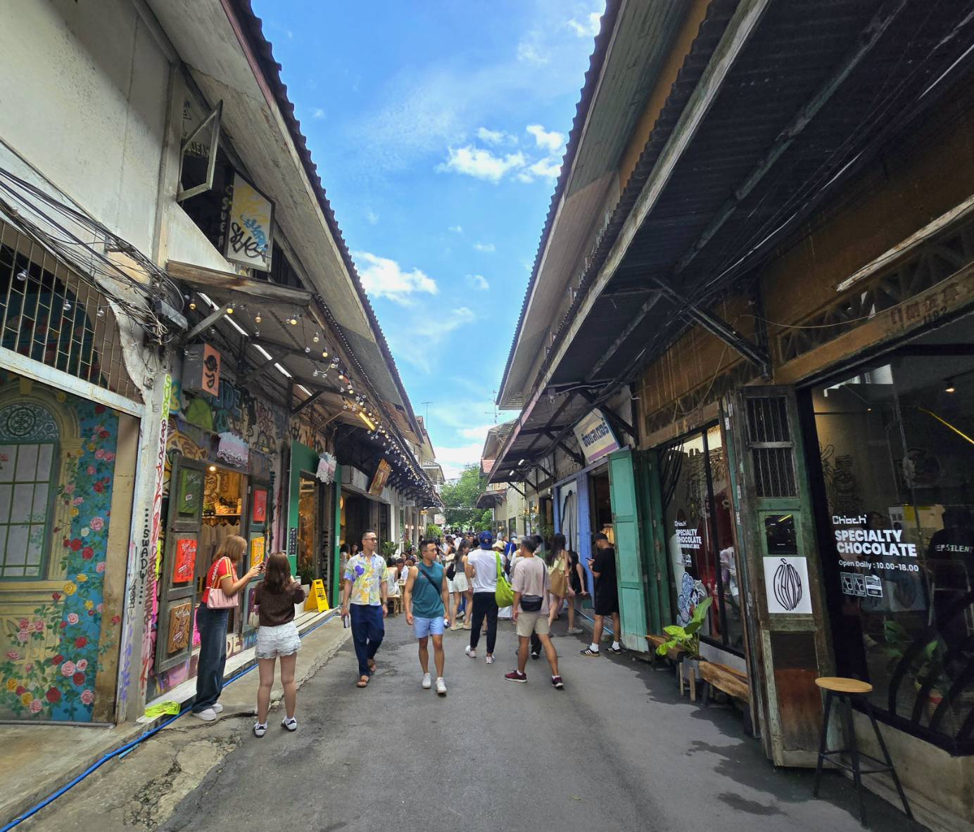 อาคารเก่าแต่ละหลังถูกแต่งเติมด้วยคาแรกเตอร์เฉพาะของแต่ละร้าน ไม่ว่าจะเป็นคาเฟ่ ร้านอาหาร ไปจนถึงร้านขายงานแฮนด์เมดน่ารักๆ และยังมีพื้นที่จัดแสดงงานศิลปะและกิจกรรมต่างๆหมุนเวียนตลอดทั้งปี ทำให้ซอยซุ้มประตูไม้ หนาแน่นไปด้วยนักท่องเที่ยวที่แวะเวียนมาเดินเล่น ถ่ายรูป นั่งจิบกาแฟ ชมวิวแม่น้ำเจ้าพระยาแบบเพลินๆ