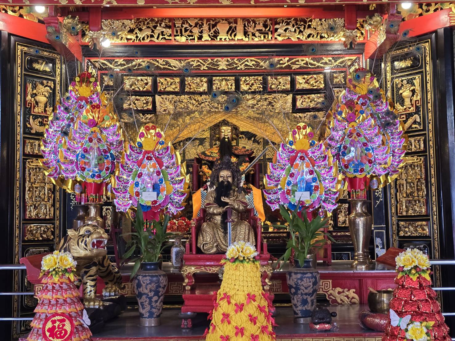 สองข้างทางในย่านทรงวาด เรียงรายไปด้วยตึกเก่าสไตล์ยุโรป สีของผนังบางจุดเริ่มลอกล่อน สลับกับบานหน้าต่างไม้เก่าที่ผุพัง แต่กลับดูมีเสน่ห์เฉพาะตัวแบบที่หาไม่ได้จากเมืองใหม่ ความคลาสสิกเหล่านี้ดึงดูดสายตาจนทำให้เราเดินชมได้เพลินๆ แบบไม่รู้สึกเบื่อเลย ไม่นานก็เดินมาถึงศาลเจ้าเล่าปุนเถ้ากง ศูนย์รวมจิตใจของชาวจีนและคนไทยเชื้อสายจีนในย่านนี้ ศาลเจ้าหลังปัจจุบันสร้างขึ้นเมื่อปี พ.ศ. 2460 โดดเด่นด้วยสถาปัตยกรรมแบบแต้จิ๋ว ที่เรียกว่า “ซี่เตี้ยมกิม” หรือ “สี่ตำแหน่งทอง” ตัวอาคารแบ่งออกเป็นสี่ห้องตามแบบฉบับดั้งเดิม ด้านในประดิษฐานองค์เทพต่างๆ ตามความเชื่อของชาวจีน ผู้คนที่แวะมาสักการะก็จะขอพรให้กิจการค้าขายราบรื่น และชีวิตครอบครัวร่มเย็นเป็นสุข