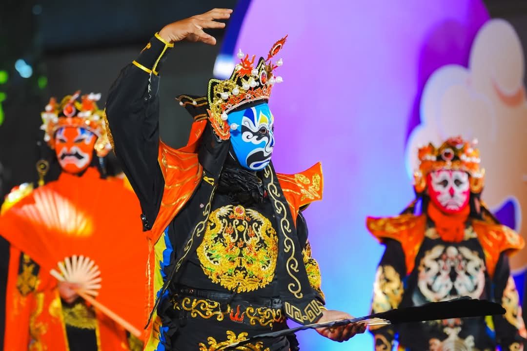 ตลอดมหกรรมเปิดเวทีจัดการแสดงงิ้วเปลี่ยนหน้ากากเสฉวน ถือเป็นการศิลปะการแสดงพื้นบ้านของจีนที่ได้รับการพัฒนาต่อยอดจากงิ้วดั้งเดิมเพื่อเพิ่มสีสันและความสนุกสนานให้กับผู้ชมมากยิ่งขึ้น งิ้วเปลี่ยนหน้าได้รับความนิยม แต่ละหน้ากาก แต่ละตัวละคร สื่อความหมายที่แตกต่างกันไป ถือเป็นการแสดงที่เต็มไปด้วยมนตร์เสน่ห์จากสมาคมอุปรากรจีน ผู้ชมจะต้องประทับใจกับเทคนิคเปลี่ยนหน้ากากเพียงชั่วพริบตา