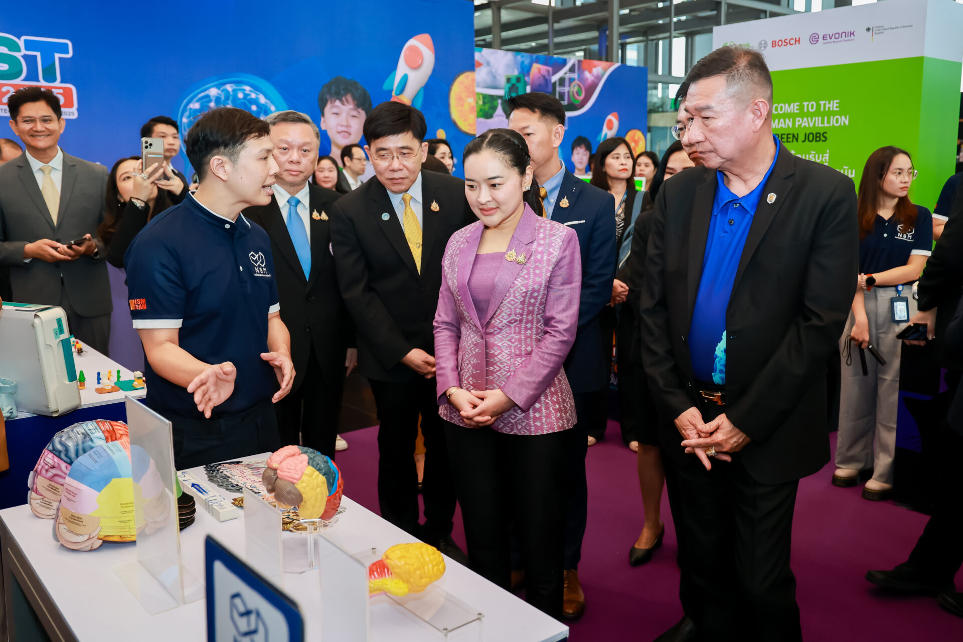 “งานมหกรรมวิทยาศาสตร์ฯ เป็นไปตามนโยบายและภารกิจสำคัญของ อว. ที่มุ่งเน้นการขับเคลื่อนประเทศด้วยองค์ความรู้และกำลังคน ภายใต้นโยบาย “สร้างปัญญา เปิดโอกาส สร้างอนาคตไทย” ซึ่งครอบคลุมภารกิจหลัก 2 ด้าน ได้แก่ การพัฒนากำลังคน ส่งเสริมการเรียนรู้ตลอดชีวิต สร้างคนให้มีทักษะที่สอดรับกับอนาคต เพื่อให้เยาวชนและแรงงานไทยสามารถแข่งขันในเวทีโลกได้ ผ่านนวัตกรรมการศึกษา เศรษฐกิจฐานชีวภาพ และเทคโนโลยีดิจิทัล และการพัฒนาวิทยาศาสตร์ วิจัย และนวัตกรรม เสริมสร้างระบบนิเวศที่พร้อมผลักดันผลงานวิจัยสู่ภาคธุรกิจและอุตสาหกรรม มุ่งเน้นการนำผลงานวิจัยไปใช้ประโยชน์จริง เพิ่มขีดความสามารถการแข่งขันให้แก่ประเทศในด้านเศรษฐกิจ สังคม และความมั่นคง” รมว.กระทรวง อว.กล่าว
