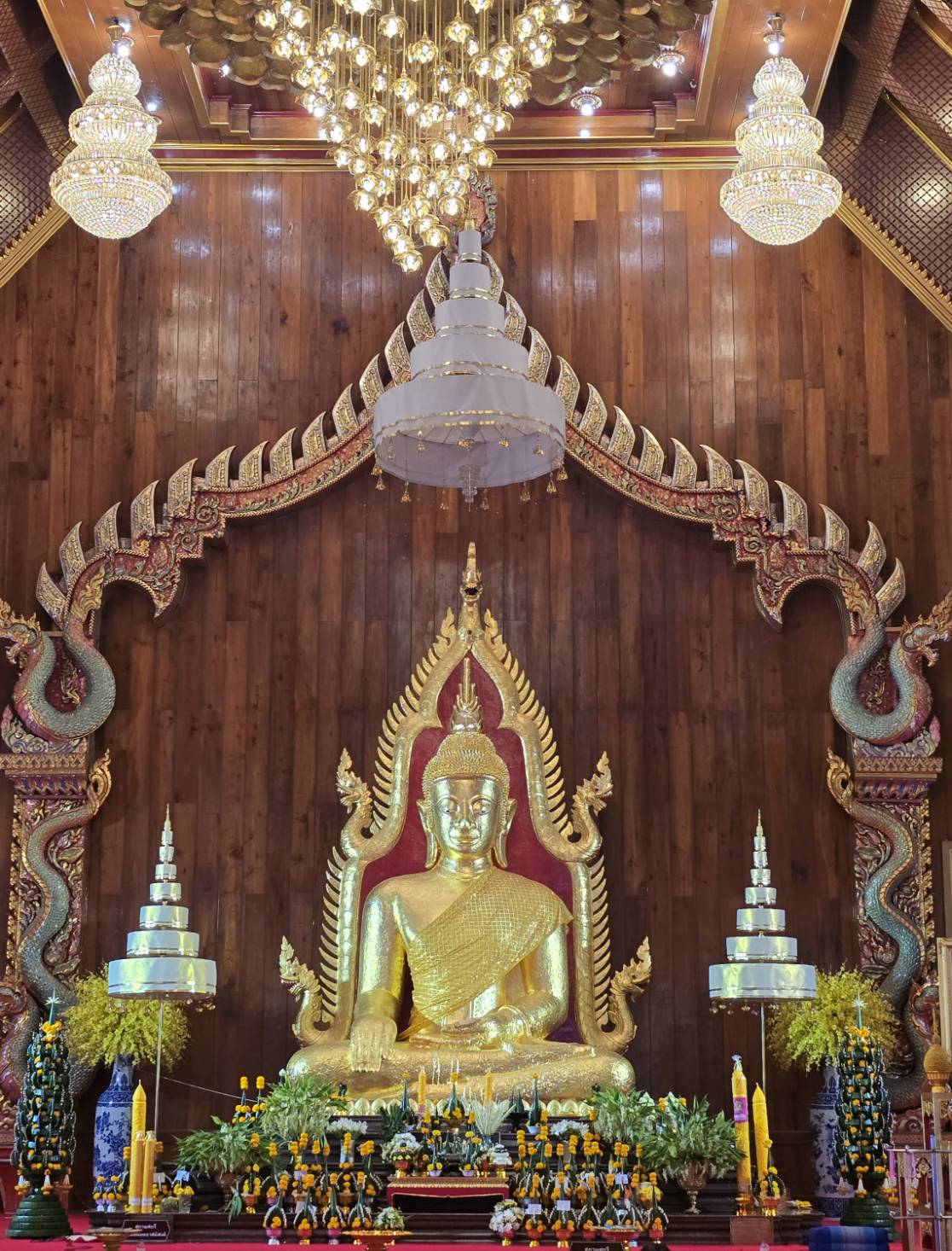 เดินเล่นในเมืองชิวจนพอใจก็เลี้ยวเข้าวัดมหาวนาราม วัดแห่งนี้มีอายุกว่า 200 ปี เดิมชื่อว่าวัดป่าหลวงมณีโชติศรีสวัสดิ์หรือที่ชาวบ้านเรียกกันว่าวัดป่าใหญ่ ก่อนจะเปลี่ยนชื่อเป็นวัดมหาวนาราม ในปี พ.ศ. 2484 และได้รับการยกฐานะเป็นพระอารามหลวงเมื่อปี พ.ศ. 2521 ไฮไลต์ของวัดนี้คือ “พระเจ้าใหญ่อินทร์แปง” พระพุทธรูปศักดิ์สิทธิ์ที่มีตำนานเล่าว่าเป็นองค์แทนสมเด็จพระสัมมาสัมพุทธเจ้าที่พระอินทร์จำแลงสร้างขึ้น รูปแบบเป็นพระปางมารวิชัย สง่างามด้วยหน้าตักกว้างถึง 6 ศอก และสูงถึง 10 ศอก สร้างจากอิฐถือปูนลงรักปิดทองอย่างวิจิตร