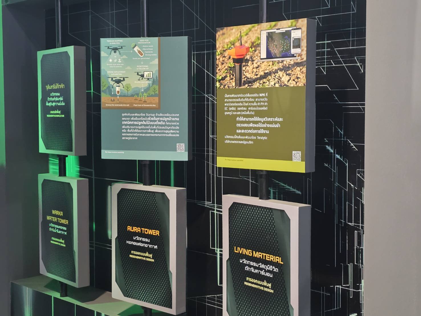พินท์สุดา กล่าวว่า ภายในบูธยังได้มีการจัดแสดงภาพไอเดียนวัตกรรมของเยาวชนที่เคยเข้าร่วมงาน จำนวน 15 ชิ้น โดยได้ออกแบบเป็นแบบร่างผลงาน เช่น รองเท้าประหยัดพลังงานชาร์จแบตได้ รถมอเตอร์ไซค์พลังงานแสงอาทิตย์ ฟุตบาทเก็บพลังงานแสงอาทิตย์ เป็นต้น ที่ได้จากการรวบรวมโพสต์อิทในช่วง 4 ปีที่แล้วทั้งหมดประมาณ 1,500 ชิ้นมาเรียบเรียงและประมวลผลเป็นเล่ม ซึ่งสามารถแบ่งออกเป็นไอเดียนวัตกรรมทั้งหมดประมาณ 4 หมวดหมู่ สะท้อนให้เห็นความคิดสร้างสรรค์ของเด็กๆและวัยรุ่น เช่น การปลูกต้นไม้เพื่อฟื้นฟูพื้นที่สีเขียว หรือการให้คำมั่นสัญญาในการเปลี่ยนแปลงพฤติกรรมส่วนบุคคลเพื่อรักษ์โลก เป็นต้น