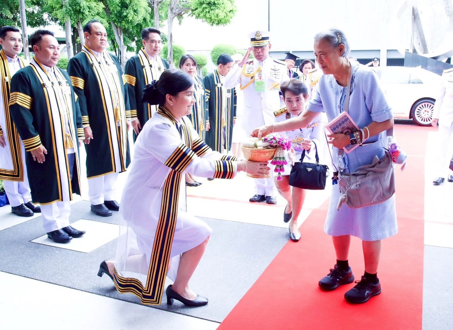 19 ส.ค.2568 สมเด็จพระกนิษฐาธิราชเจ้า กรมสมเด็จพระเทพรัตนราชสุดาฯ สยามบรมราชกุมารี เสด็จพระราชดำเนินแทนพระองค์ไปพระราชทานปริญญาบัตรแก่ผู้สำเร็จการศึกษาจากสถาบันบัณฑิตพัฒนศิลป์ กระทรวงวัฒนธรรม ประจำปีการศึกษา 2567 โอกาสนี้ นายประสพ เรียงเงิน ปลัดกระทรวงวัฒนธรรม ดร.นิภา โสภาสัมฤทธิ์ อธิการบดีสถาบันบัณฑิตพัฒนศิลป์ พร้อมคณะผู้บริหารกระทรวงวัฒนธรรม เฝ้าฯ รับเสด็จ ณ หอประชุมใหญ่ ศูนย์วัฒนธรรมแห่งประเทศไทย