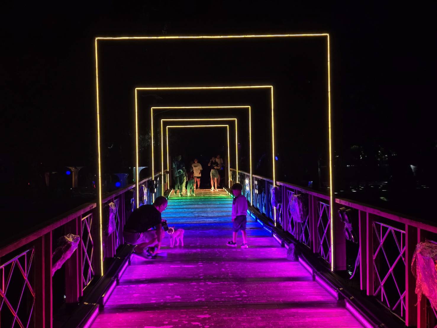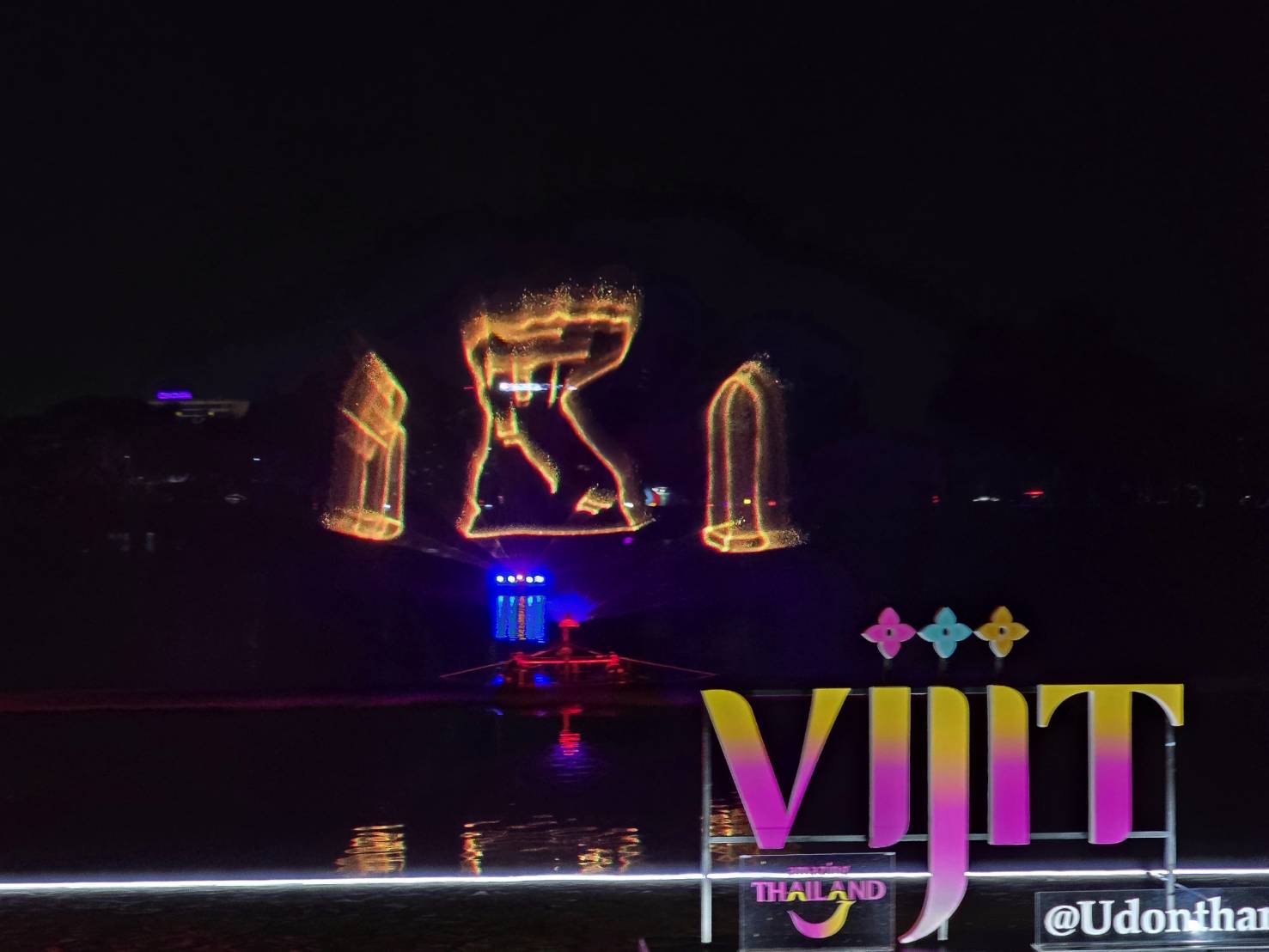 เข้าสู่ จุดที่ 5.พญานาคาล่องทะเลบัวแดง พญานาคผู้พิทักษ์สายน้ำปรากฏผ่านเส้นไฟรูปลักษณ์พญานาคผสานกับเสาดอกบัวเรืองแสง เผยตำนานและศรัทธาที่ยังมีชีวิต จุดที่ 6.แสงสนุกแห่งอนาคต แม้ผู้คนจะสืบทอดอดีต แต่อนาคตต้องเริ่มจากเด็ก สีสันความสนุกเปรียบได้ดั่งอนาคตอันสดใสชาวอุดรธานี พื้นที่แห่งนี้เหมือนสนามพลังงานของเยาวชนผู้สืบทอดวัฒนธรรม เสียงหัวเราะ การเล่นสนุก แสงไฟที่วิ่งพลิ้วไปมาเป็นตัวแทนอนาคตอุดร” ที่ม่หยุดเคลื่อนไหว