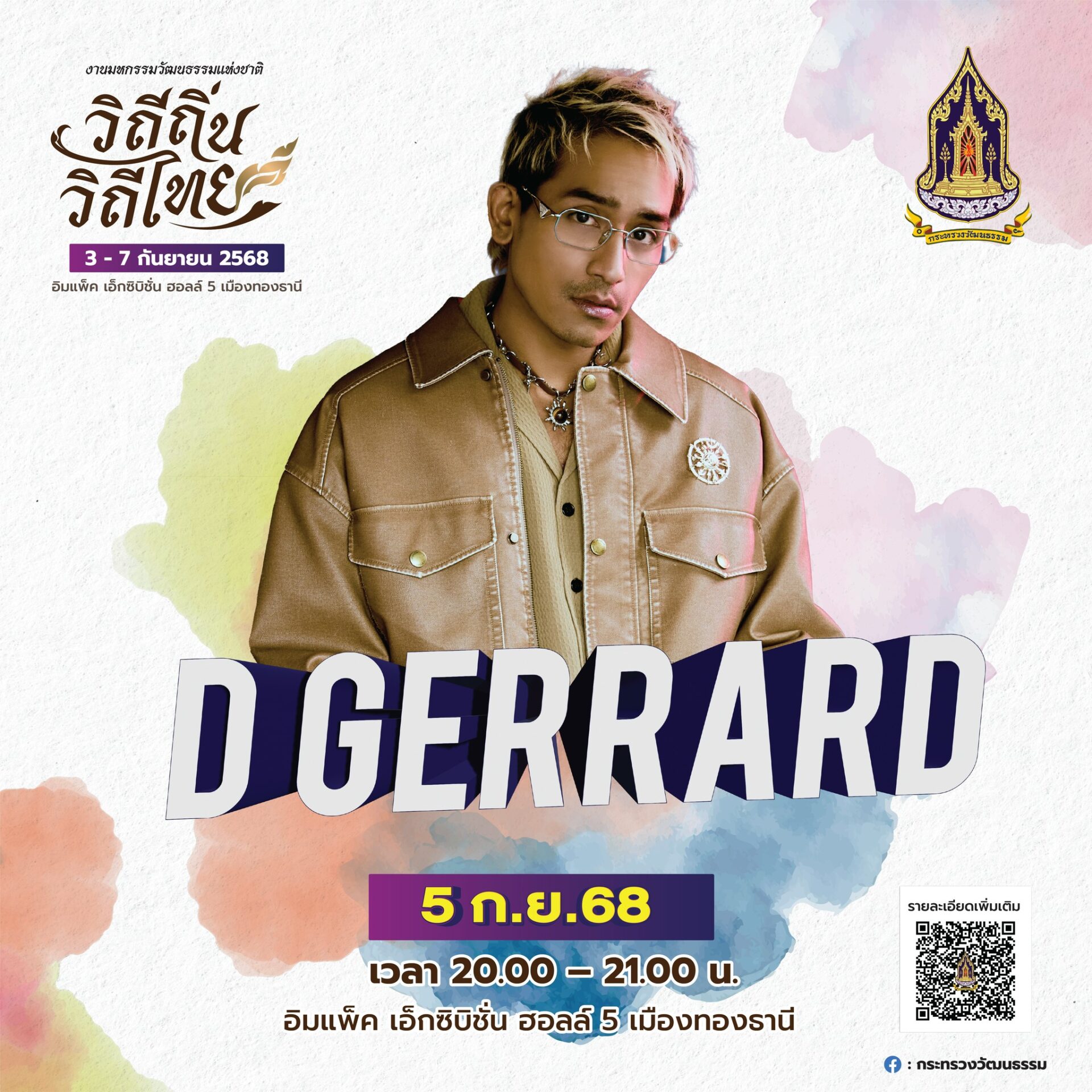 วันศุกร์ไปสนุกที่มหกรรมวิถีถิ่น วิถีไทย ตื่นตาโนราร่วมสมัย ‘ธรรมนิตย์ นิคมรัตน์’ ฮาท้องแข็งกับน้าโย่ง เชิญยิ้ม จำอวดหน้าม่าน ส่งท้ายคอนเสิร์ต D GERRARD ศิลปินหนุ่มมากความสามารถมาพร้อมเพลงฮิต