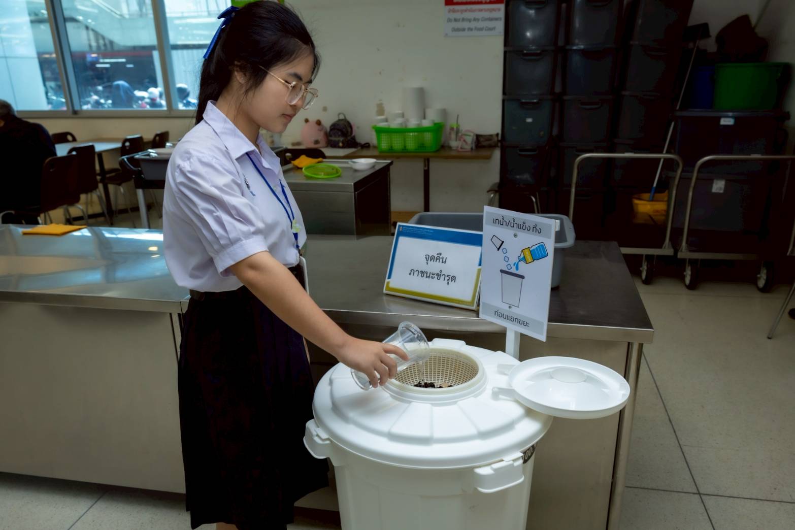 1 ใน 15 ศูนย์อาหารลดขยะอาหารนำร่อง พิมศิณี โลหิตกุล ผู้จัดการอาวุโส ส่วนบริหารอาคาร 1 ฝ่ายบริหารศูนย์ราชการ 1 บ.ธนารักษ์พัฒนาสินทรัพย์ จำกัด กล่าวว่า ศูนย์ราชการ มี 4 ศูนย์อาหารที่บริษัทรับผิดชอบ อาคาร A มีผู้ใช้บริการ 4,000 คนต่อวัน มีปริมาณขยะ 200 กิโลกรัมต่อวัน หลังเข้าโครงการฯ ผู้ประกอบการจัดเตรียมอาหารให้พอดี คัดแยกขยะเศษอาหาร พบขยะลดลงเหลือ 80-100 กก.ต่อวัน อาคาร B มี 3 ศูนย์อาหาร ก็จัดการขยะอย่างเป็นระบบ ขยะอาหารนำมาใช้ประโยชน์ผลิตปุ๋ยอินทรีย์ ใช้ดูแลต้นไม้ในศูนย์ราชการ โครงการพระราชดำริ และโรงเรียน เป้าหมายต่อไปจะมุ่งสู่ Zero Waste ผ่านการคัดแยกขยะทุกประเภทตามแนวทางระบบเศรษฐกิจหมุนเวียน