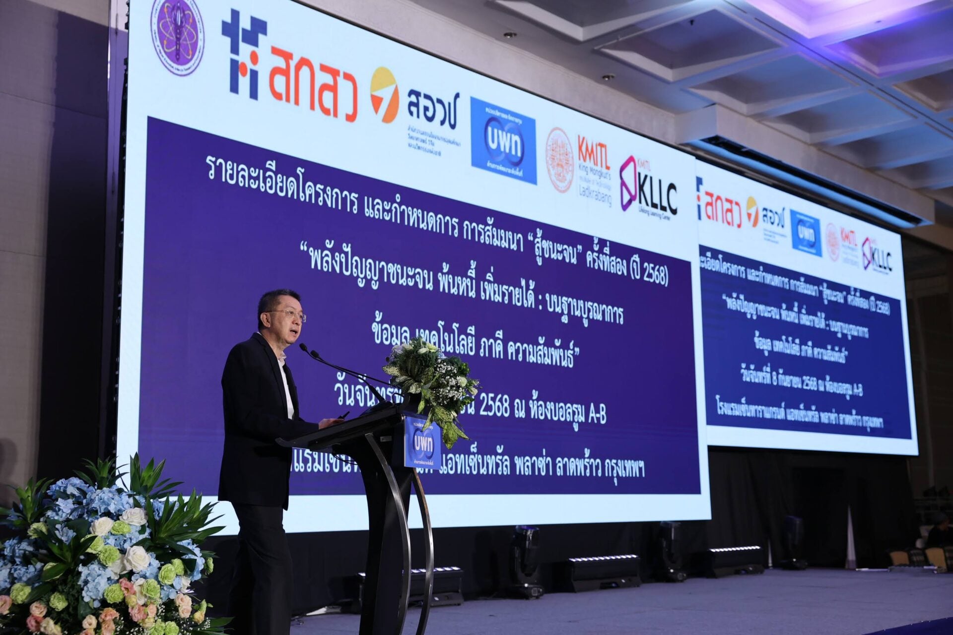 งานสู้ชนะความจนครั้งที่ 2 พลังปัญญาชนะจน พ้นหนี้ เพิ่มรายได้ บนฐานบูรณาการข้อมูล เทคโนโลยี ภาคี ความสัมพันธ์ หน่วยบริหารและจัดการทุนด้านการพัฒนาระดับพื้นที่ (บพท.) กระทรวงการอุดมศึกษา วิทยาศาสตร์ วิจัยและนวัตกรรม (อว.) ได้ระดมสมองภาคีเครือข่ายนักวิจัยมหาวิทยาลัยทั่วประเทศตอบโจทย์รัฐบาล เพื่อมุ่งแสวงหาคำตอบแก้ปัญหาเศรษฐกิจ-ภัยธรรมชาติ-ภัยความมั่นคงชายแดน-ภัยสังคม