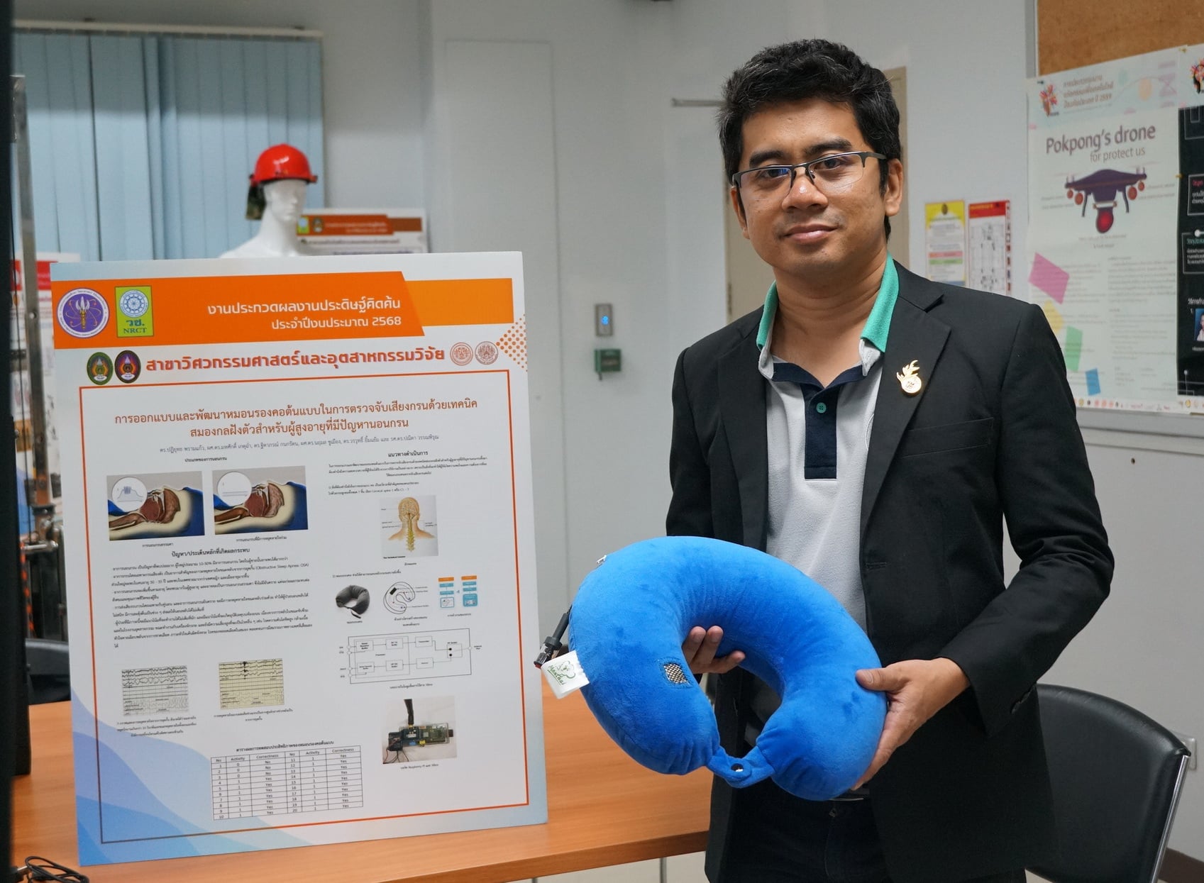ดร.ปฏิยุทธ กล่าวว่า สิ่งที่พัฒนานวัตกรรม ‘หมอนอัจฉริยะ’ เพื่อตรวจจับเสียงกรนและป้องกันภาวะหยุดหายใจขณะหลับในผู้ใช้ ผ่านเทคนิคสมองกลฝังตัว (Embedded System) ที่สามารถวิเคราะห์และจำแนกคลื่นเสียงได้อย่างแม่นยำ โดยระบบใช้อัลกอริทึมประมวลผลสัญญาณเสียงขั้นสูง ผสมผสานระหว่าง Digital Signal Processing (DSP) เช่น การวิเคราะห์สเปกตรัมความถี่ (FFT) และการกรองสัญญาณ (Filtering) ร่วมกับ Machine Learning Models ที่ผ่านการฝึกจากฐานข้อมูลเสียงจริง เพื่อคัดแยกเสียงกรนออกจากเสียงพูดหรือเสียงรบกวนอื่น ๆ ได้อย่างแม่นยำ