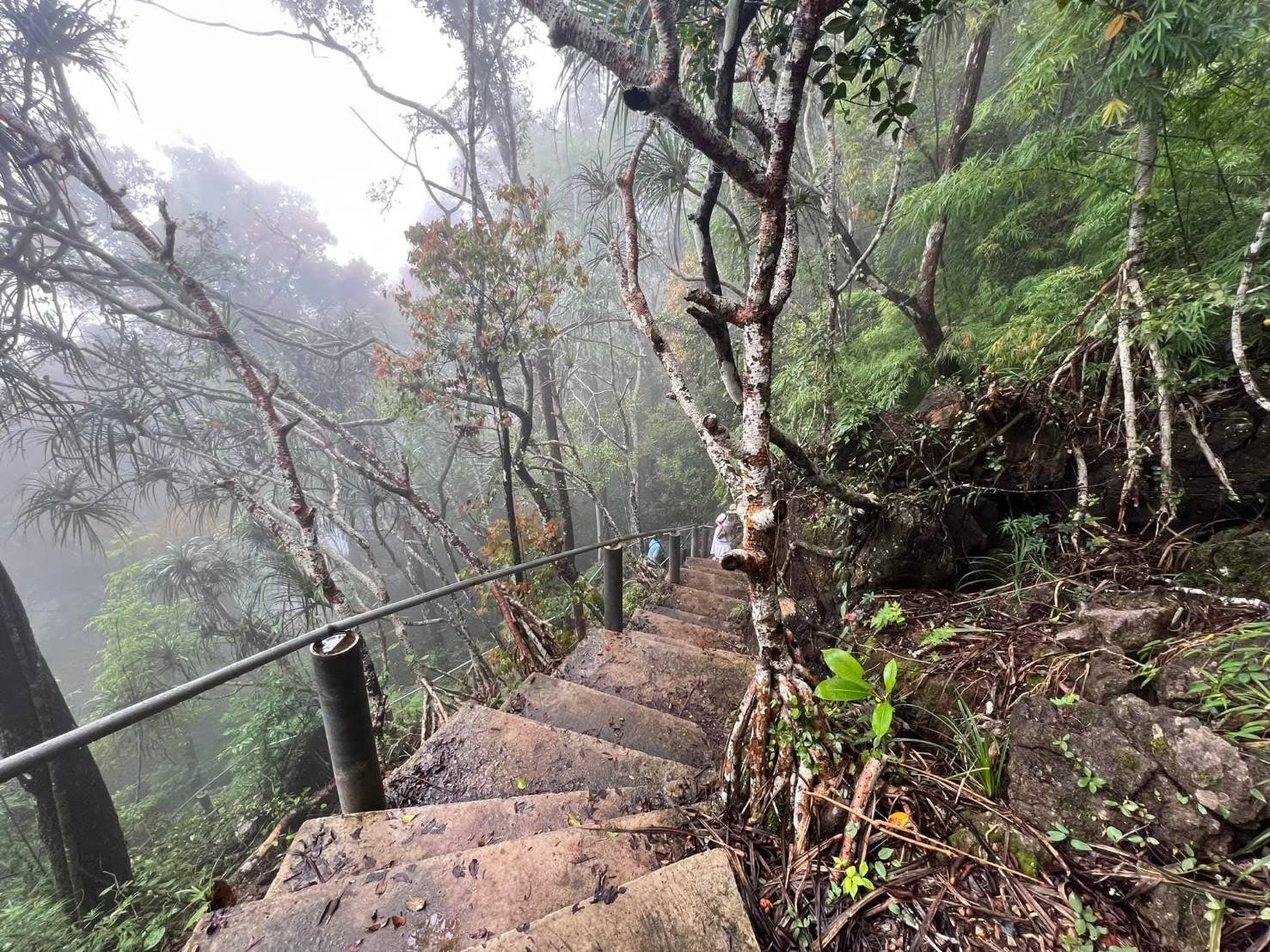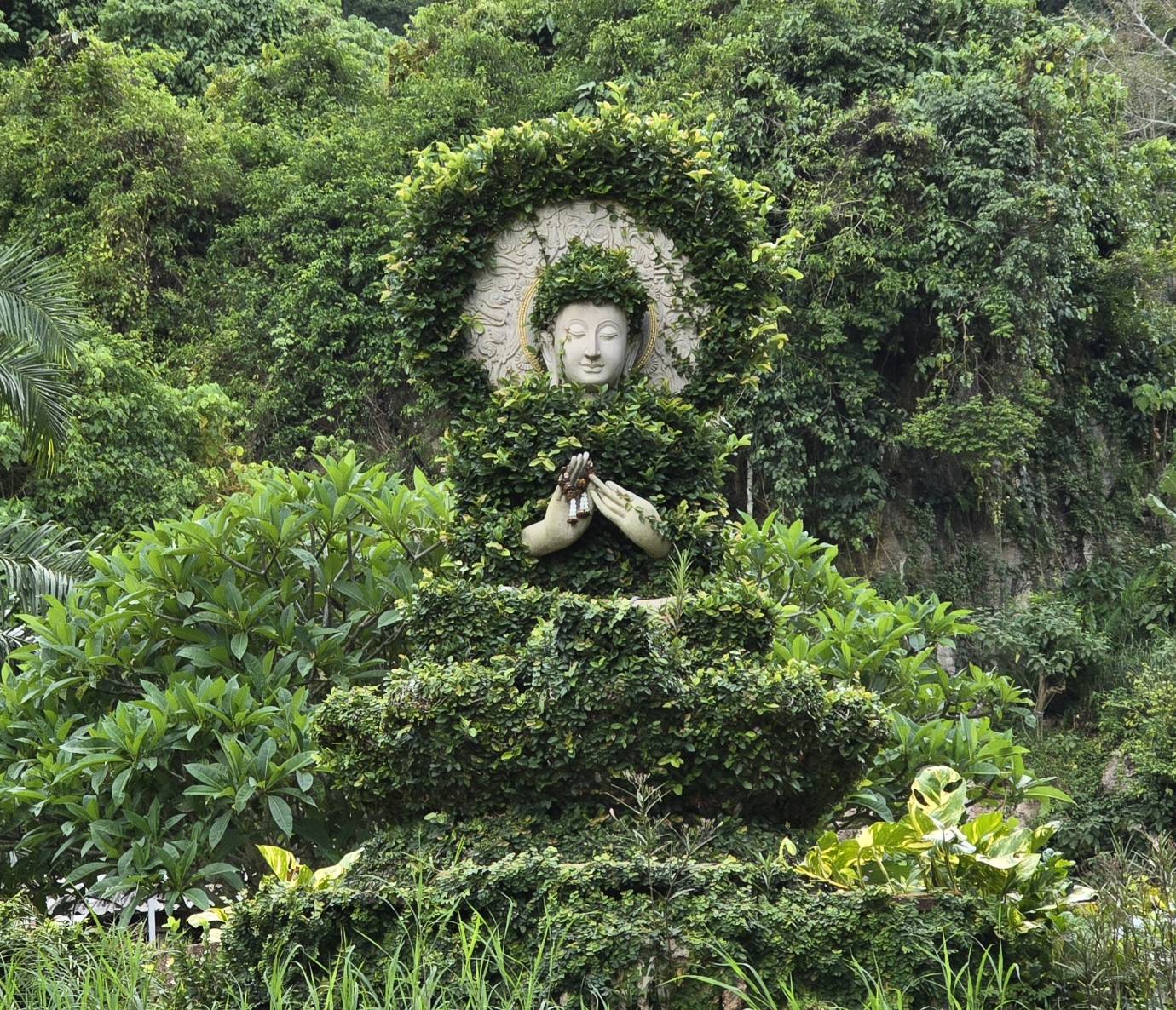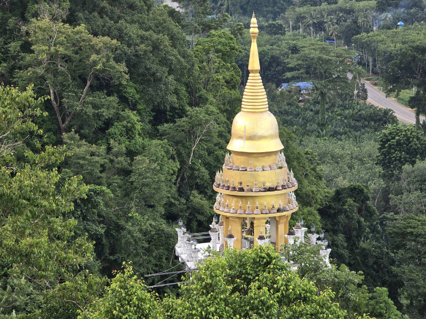 เดินทางต่อมาในอ.พนม ที่อุทยานธรรมเขานาในหลวง สถานที่ที่สงบร่มรื่นซ่อนตัวอยู่ท่ามกลางขุนเขา ความเป็นมาของอุทยานธรรมแห่งนี้เริ่มขึ้นในปี 2541 โดย พระอาจารย์สมพงศ์ วชิรปัญโญ ผู้ก่อตั้งและเป็นเจ้าอาวาสอยู่ในปัจจุบัน ต่อมาในปี 2552 อุทยานเข้าร่วมโครงการพุทธอุทยานเฉลิมพระเกียรติ รัชกาลที่ 9 โดยกรมป่าไม้จัดสรรพื้นที่ปหุงข้าวใบแรดใส่ในกระบอกไม้ไผ่ระมาณ 30 ไร่ จากนั้นในปี 2553 จึงเริ่มก่อสร้างซุ้มประตูพุทธาวดี ซึ่งสร้างเสร็จในปี 2555 ซุ้มประตูนี้ประกอบด้วยยอดเจดีย์เล็ก ๆ 9 ยอด ปกคลุมด้วยไม้เลื้อยที่ขึ้นเองตามธรรมชาติ ซึ่งเป็นแลนมาร์กอันเป็นเอกลักษณ์ที่ใคร ๆ ก็ต้องถ่ายรูปเช็คอินกัน จากแรงศรัทธาและการบริจาคเงินชาวบ้าน เจ้าอาวาสจึงได้นำมาสร้างเจดีย์ลอยฟ้าบรรจุพระบรมสารีริกธาตุโดยตั้งใจไว้ว่าจะสร้างให้ครบ 7 ยอด