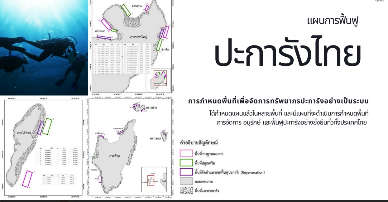 แผนนำร่องจัดวางวัสดุฐานลงเกาะตัวอ่อนปะการัง และการขยายผลตามแผนงานอนุรักษ์ฟื้นฟูทรัพยากรทางทะเลของไทย กรมทรัพยากรทางทะเลและชายฝั่ง เผยโครงการนำร่องในการจัดวางวัสดุฐานลงเกาะ “Whirling Wave Pagoda หรือ เจดีย์เกลียวคลื่น” พร้อมแผนงานอนุรักษ์ฟื้นฟูทรัพยากรทางทะเลและชายฝั่งของไทย ด้วยการจัดวางฐานลงเกาะตัวอ่อนปะการังอย่างเป็นระบบ โดยแผนการดำเนินงานระยะสั้น ในช่วงต้นปี 2569 ตั้งเป้าการจัดวางต้นแบบวัสดุฐานลงเกาะตัวอ่อนปะการัง ใน 7 จังหวัด ครอบคลุมพื้นที่ 14 ไร่ พร้อมร่วมมือกับนักวิชาการจาก ทช. ในการศึกษาวิจัย ติดตาม