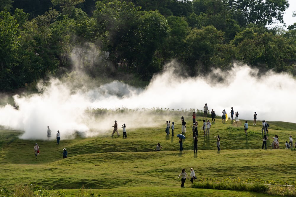 การเสพศิลป์ที่ Khao Yai Fog Forestไม่ได้จำกัดอยู่แค่การมองด้วยตา แต่ใช้ทุกประสาทสัมผัสรับรู้ถึงตัวตนของศิลปะอย่างแท้จริง สัมผัสกับความเย็นและความชื้นจากละอองหมอกที่กระทบผิว ได้ยินเสียงน้ำและเสียงลมที่พัดผ่าน ได้กลิ่น ไอดินและต้นไม้ชุ่มน้ำ และมองเห็นการเคลื่อนไหวม่านหมอกที่โอบล้อมรอบตัว เป็นประสบการณ์ที่ดึงเราออกจากโลกดิจิทัลและเชื่อมต่อกับธรรมชาติและศิลปะลึกซึ้ง ความพิเศษนี้ทำให้ผลงานมีชีวิตชีวา ดูแล้วสดชื่น เพราะผู้ชมจะมองเห็นการเคลื่อนไหวของสายลมที่พัดพาหมอกไปในทิศทางต่าง ๆ ทำให้ Khao Yai Fog Forestเป็นมากกว่าการชมงานศิลปะ แต่เปิดประสบการณ์ใหม่ที่ปลุกเร้าทุกประสาทสัมผัส มาพบกับประสบการณ์ที่ไม่สามารถพบเห็นได้ในชีวิตประจำวัน แต่เป็นปรากฏการณ์ที่น่าจดจำ
