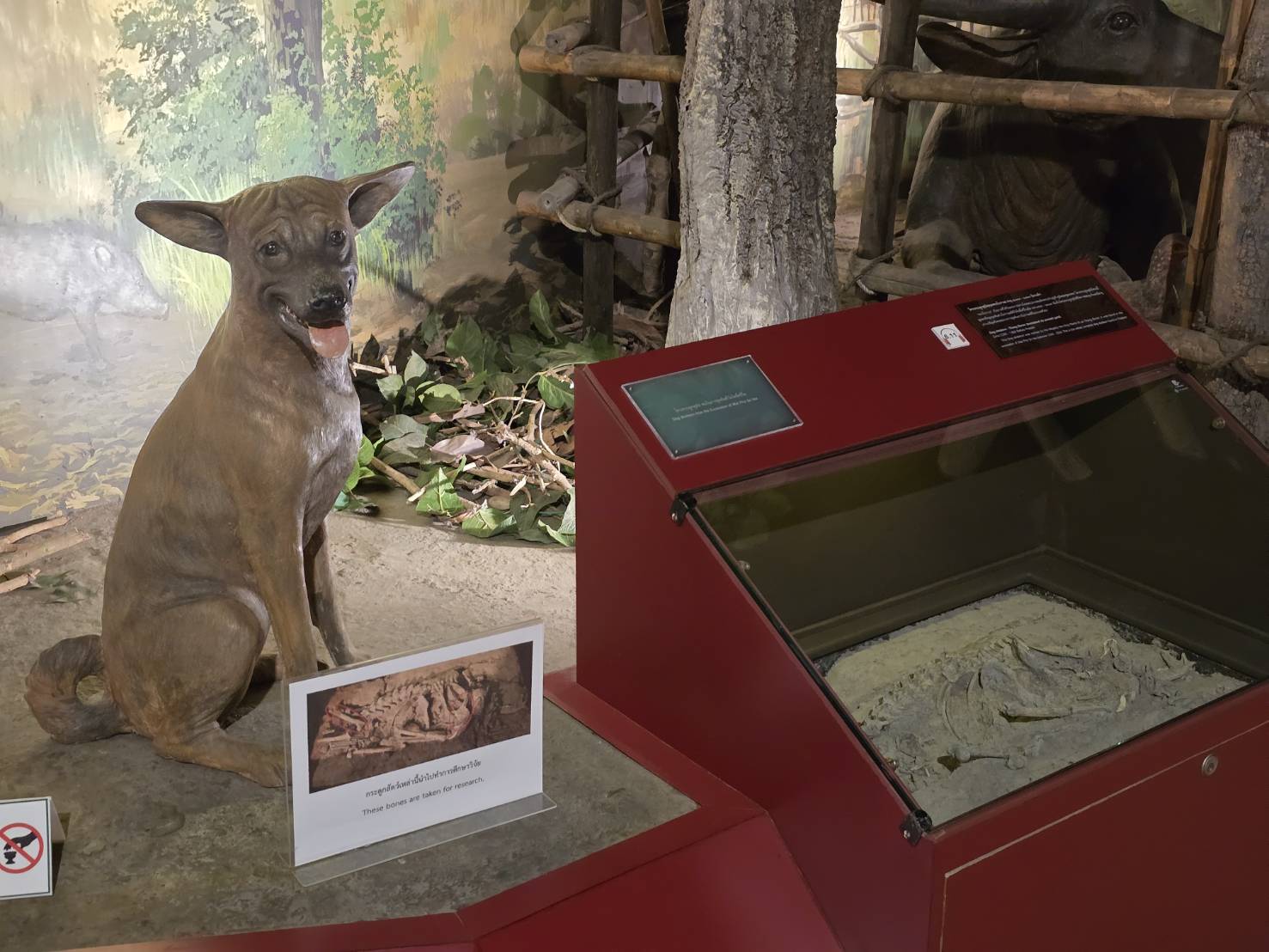 โดยไฮไลต์ที่เราพาไปชมจะจัดแสดงอยู่ในส่วนที่5-7 มาเริ่มกันที่ชิ้นแรก “โครงกระดูกสุนัข” อายุราว 2,300-1,800 ปี ที่นับว่าเป็นโครงกระดูกสุนัขที่มีสภาพสมบูรณ์และมีอายุเก่าแก่ที่สุดที่เคยพบจากการขุดค้นทางโบราณคดีในประเทศไทย ได้รับนามพระราชทานจากพระบาทสมเด็จพระบรมชนกาธิเบศร มหาภูมิพลอดุลยเดชมหาราช บรมนาถบพิตร ว่าคุณทองโบราณ และถูกดัดแปลงให้เป็นมาสคอตประจำจังหวัดอุดรธานี เพื่อใช้เป็นสัญลักษณ์ของการท่องเที่ยวอุดรธานี