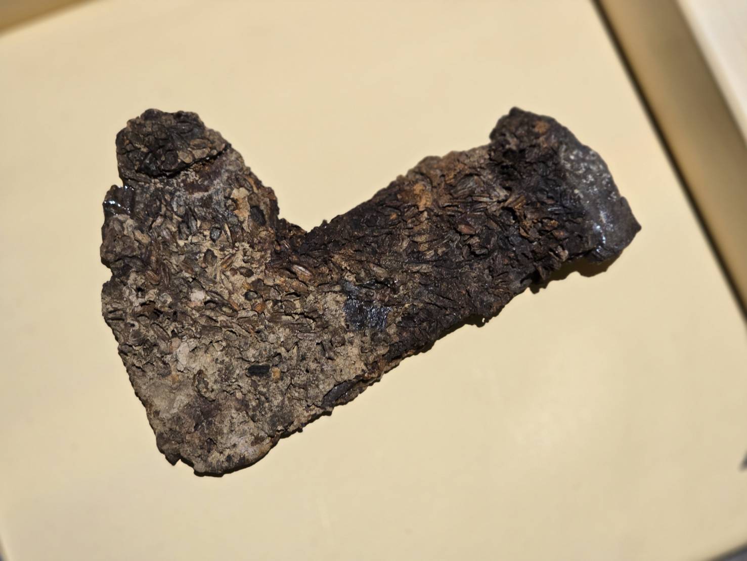 เครื่องมือเหล็ก มีเปลือกข้าวที่ฝังอยู่ในเนื้อของสนิมโลหะ