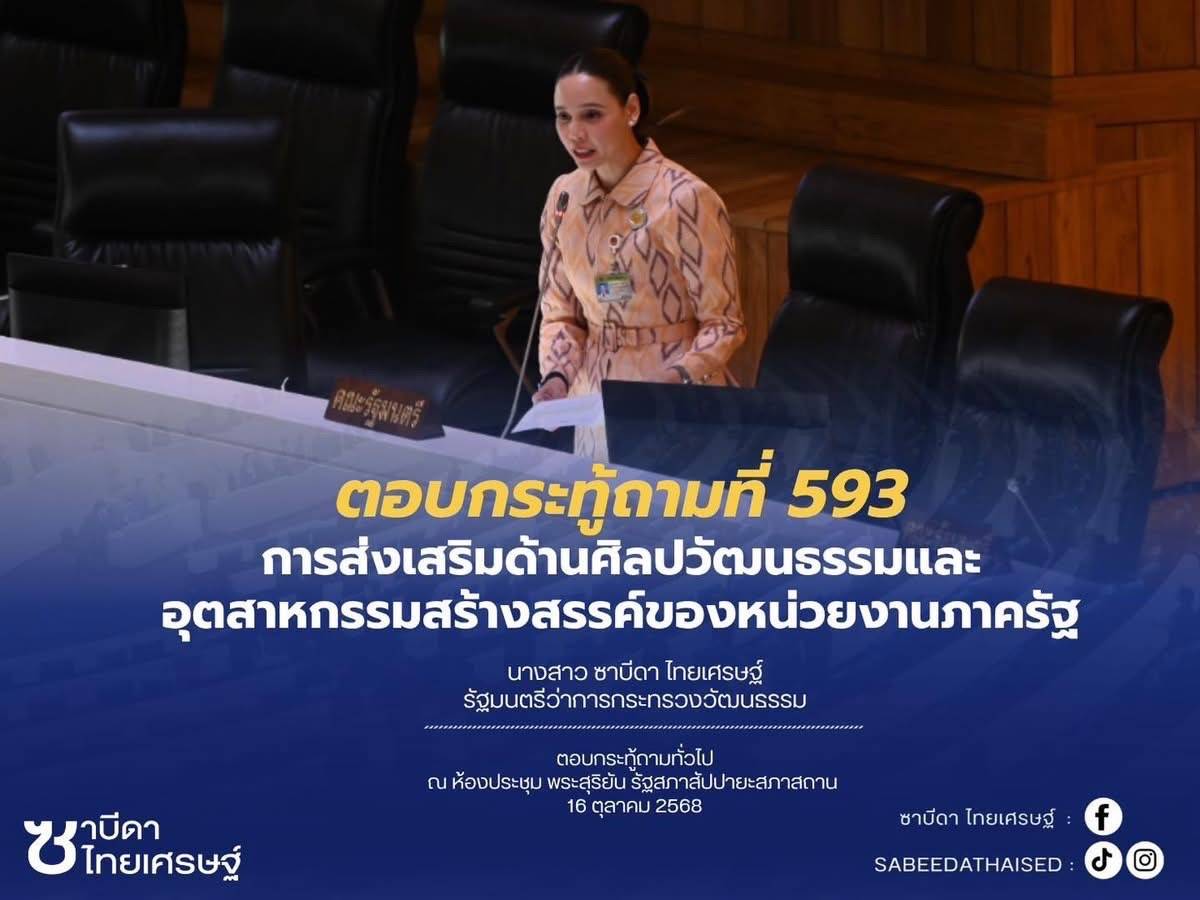 เมื่อวันที่ 16 ต.ค.2568 ที่ผ่านมา ในการประชุมสภาผู้แทนราษฎร นางสาวซาบีดา ไทยเศรษฐ์ รัฐมนตรีว่าการกระทรวงวัฒนธรรม ตอบกระทู้ถามทั่วไปนายอภิสิทธิ์ ไล่สัตรูไกล สส.บัญชีรายชื่อ พรรคประชาชน เกี่ยวกับการบริหารงบประมาณ ว่า รัฐมนตรีเพิ่งเข้ารับตำแหน่งได้ประมาณ 2 สัปดาห์ และได้พยายามรีวิวโครงการต่างๆ เพื่อทบทวนและชะลอหลายโครงการที่ไม่มีประสิทธิภาพ โดยจะดูจากผลสัมฤทธิ์ เมื่อเทียบกับปีที่แล้ว ซึ่งจะต้องมีการปรับเปลี่ยนให้เข้ากับนโยบายปัจจุบัน โดยนโยบาย 3 ประการคือ 1.ส่งเสริม การท่องเที่ยวทางวัฒนธรรม 2.คืนเงินทุนให้กับผู้ประกอบการภาพยนตร์ชาวไทย 3.พัฒนาสินค้าทางด้านวัฒนธรรม