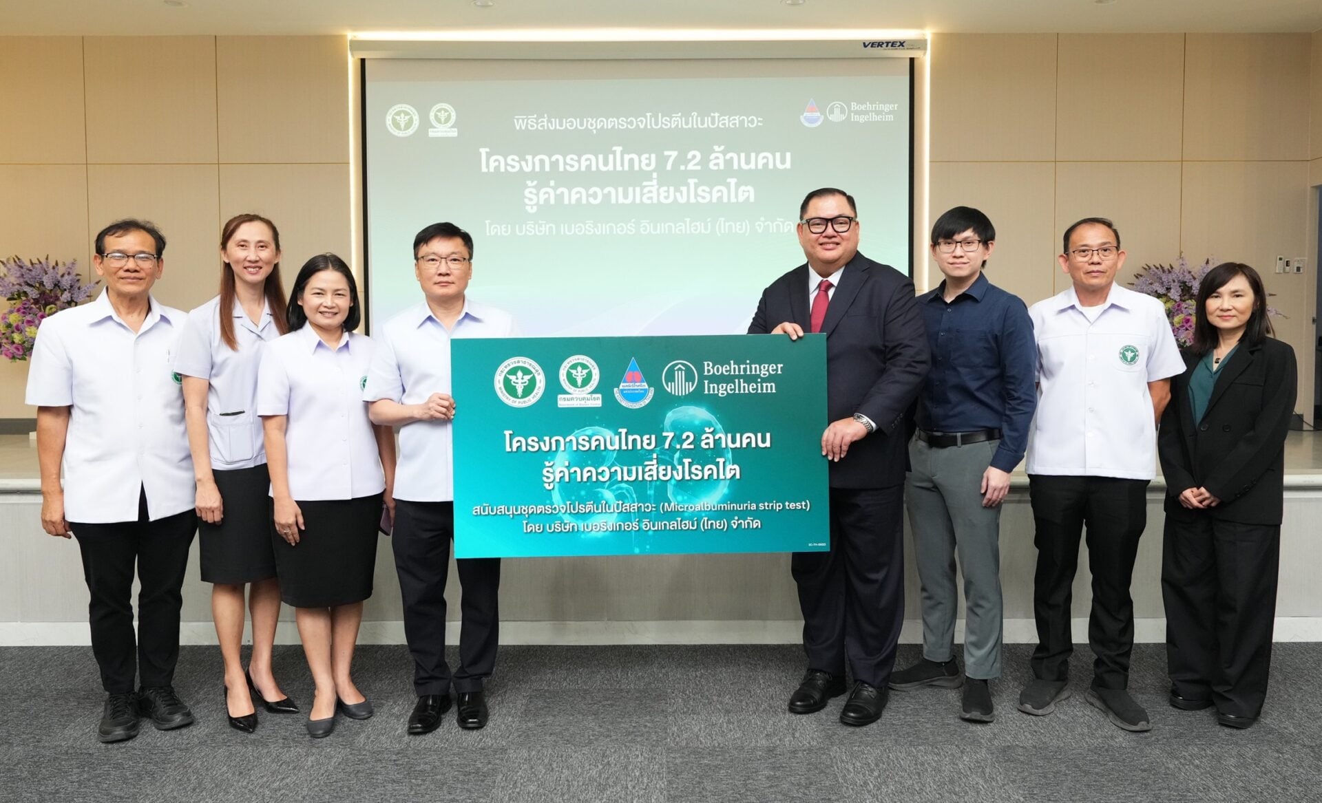 โรคไตเรื้อรัง จึงเป็นภัยเงียบระดับชาติที่ต้องเร่งป้องกัน จัดเป็นปัญหาสาธารณสุขสำคัญของประเทศ เนื่องจากมีอุบัติการณ์ของโรคสูง และเป็นปัจจัยเสี่ยงหลักที่นำไปสู่ภาวะแทรกซ้อนร้ายแรง เช่น โรคหัวใจและหลอดเลือด ด้วยเหตุนี้ บริษัท เบอริงเกอร์ อินเกลไฮม์ (ไทย) จำกัด จึงได้เช้ามาสนับสนุนโครงการ “คนไทย 7.2 ล้านคน รู้ค่าความเสี่ยงโรคไต” เพื่อเฉลิมพระเกียรติสมเด็จพระกนิษฐาธิราชเจ้า กรมสมเด็จพระเทพรัตนราชสุดาฯ สยามบรมราชกุมารี ในโอกาสทรงเจริญพระชนมายุ 72 พรรษา เพื่อยกระดับสุขภาพคนไทยอย่างยั่งยืน ด้วยการส่งมอบชุดตรวจโปรตีนในปัสสาวะ (Microalbuminuria strip test) ให้แก่ กองโรคไม่ติดต่อ กรมควบคุมโรค กระทรวงสาธารณสุข และเขตสุขภาพต่าง ๆ ในประเทศไทย โดยจัดพิธีส่งมอบ ณ โรงพยาบาลพัทยาปัทมคุณ จังหวัดชลบุรี เพื่อสนับสนุนการดำเนินงานของโครงการ เพื่อเพิ่มการเข้าถึงการตรวจคัดกรองในกลุ่มประชาชนที่มีความเสี่ยง เช่น ผู้ที่เป็นเบาหวาน ความดันโลหิตสูง นิ่วในไต เกาต์ และผู้ที่มีประวัติใช้ยาแก้ปวดกลุ่ม NSAIDs เป็นประจำให้สามารถตรวจพบความผิดปกติของไตได้ตั้งแต่ระยะเริ่มต้น เพื่อให้ได้รับการรักษาอย่างเหมาะสม ช่วยชะลอความเสื่อมของไต และลดโอกาสการเข้าสู่ภาวะไตวายระยะสุดท้ายได้