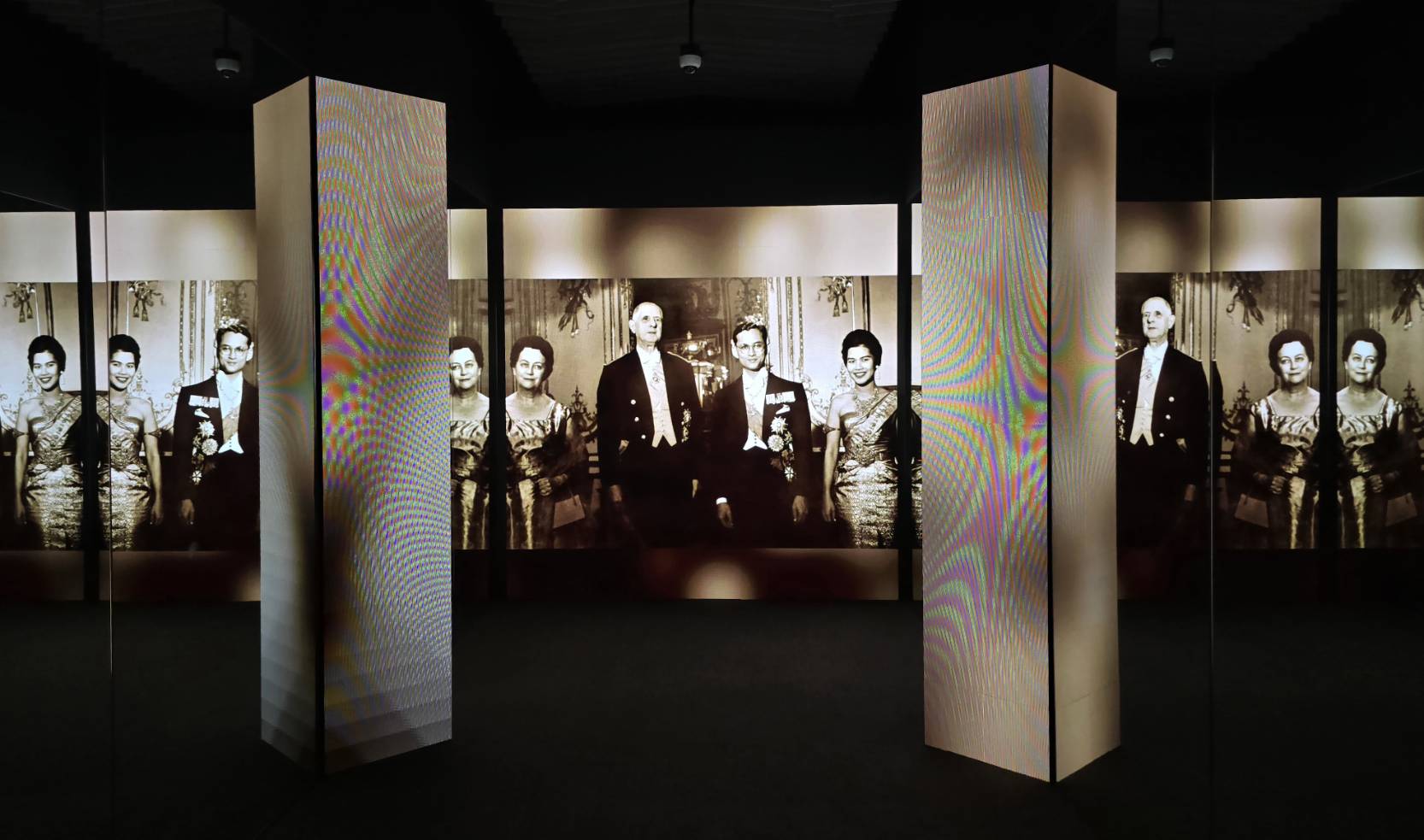 ห้องที่ 4 การจัดแสดงแบบ Immersive ฉายภาพเมื่อครั้งสมเด็จพระบรมราชชนีพันปีหลวง ตามเสด็จในหลวงรัชกาลที่ 9 เสด็จพระราขดำเนินเยือต่างประเทศ ทรงฉลองพระองค์ด้วยชุดไทย