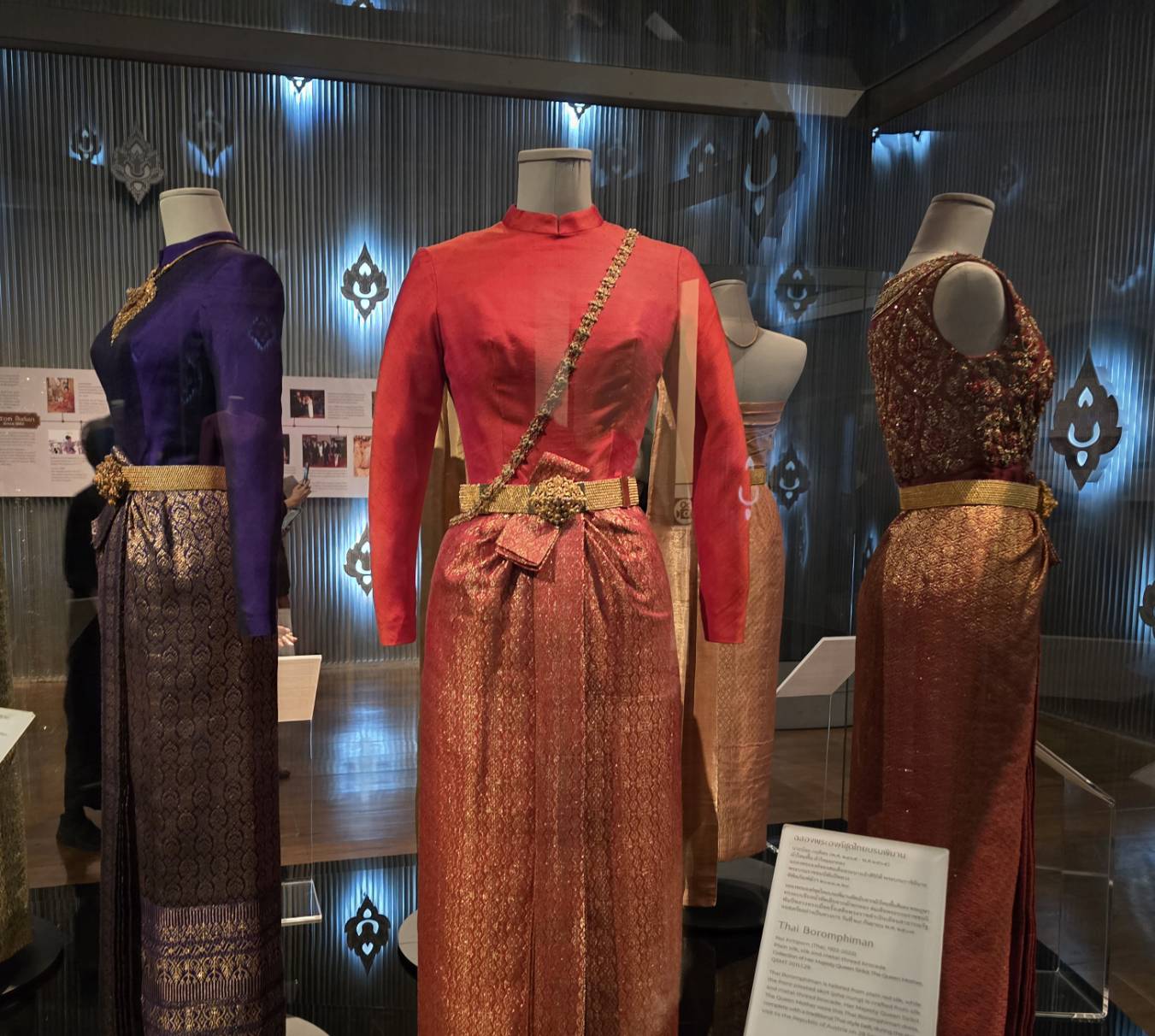 เดินเชื่อมมายังห้องที่ 4 ที่เป็นการจัดแสดงแบบ Immersive ฉายภาพความเป็นมาของชุดไทยพระราชนิยม ที่มีการฉลองพระองค์ของพระบรมวงศานุวงศ์ และประชาชน ถัดมาห้องที่ 2 จัดแสดงพระราชกรณียกิจของสมเด็จพระบรมราชชนนีพันปีหลวง ผ่านฉลองพระองค์ระหว่างปี 1960–2000 สะท้อนพัฒนาการของแฟชั่นไทยที่ผสานอัตลักษณ์พื้นถิ่นกับความร่วมสมัย ช่วงทศวรรษ 1960 ห้องเสื้อบัลแมงมีอิทธิพลสูงต่อการออกแบบ มีการผสมผสานผ้าไทยกับผ้าฝรั่ง เช่น ชุดค็อกเทลเดรสสีม่วงตัดเย็บด้วยผ้ายก ให้ความรู้สึกหรูหราและสากล