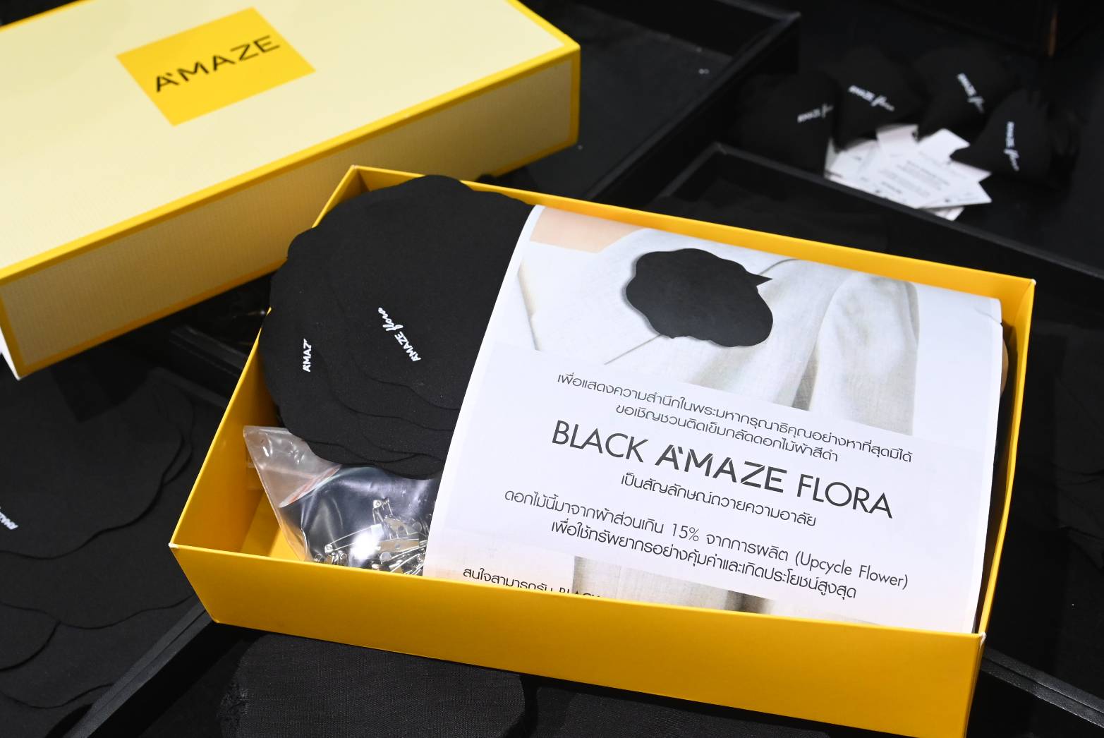 โครงการ “BLACK A’MAZE FLORA” จัดขึ้นเพื่อเป็นการเชิดชูพระเกียรติคุณ และรำลึกถึงพระเมตตาที่ทรงมีต่อปวงชนชาวไทย โดยเฉพาะอย่างยิ่งทรงอุทิศพระวรกายตลอดหลายทศวรรษ เพื่ออนุรักษ์ ส่งเสริมศิลปหัตถกรรม และส่งเสริมการปลูกหม่อนเลี้ยงไหมแก่พสนิกรไทย สร้างรายได้และความภาคภูมิใจในผ้าไหมไทย นำมาสู่แรงบันดาลใจในการสร้างสรรค์สัญลักษณ์แห่งความอาลัยที่มีคุณค่าทางจิตใจอย่างยั่งยืนเหนือกาลเวลา โดยใช้ “ดอกไม้ผ้าสีดำ” ที่ประดิษฐ์ด้วยการอัพไซเคิล (Upcycled Material) ในกระบวนการผลิต เพื่อรักษาทรัพยากรผ้าไม่ให้สูญเปล่า เพิ่มมูลค่าทางจิตใจ ควบคู่ไปกับความสวยงาม สามารถแตกต่างเครื่องแต่งกายได้อย่างสุภาพเรียบร้อย